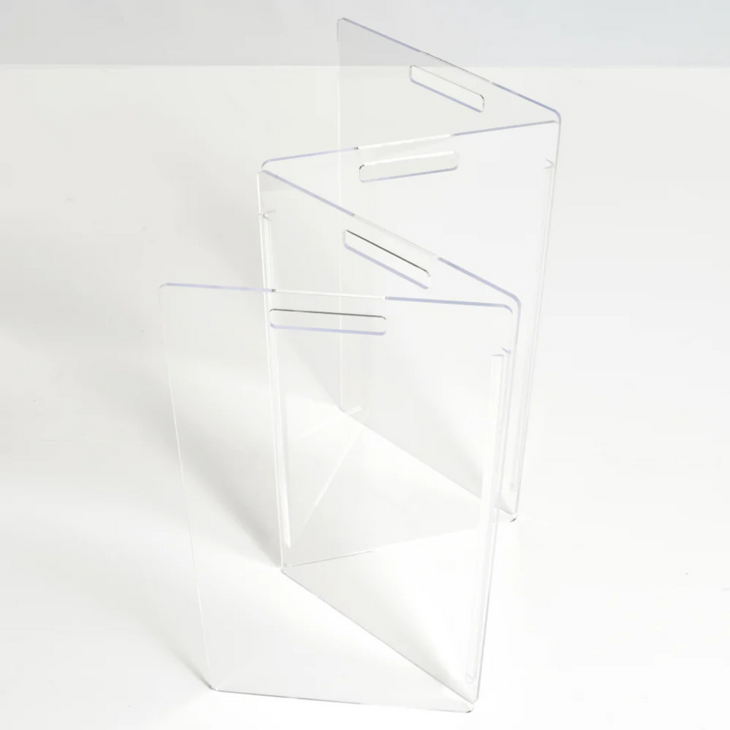 - Material: Clear 1/4" thick acrylic panels with clear hinges