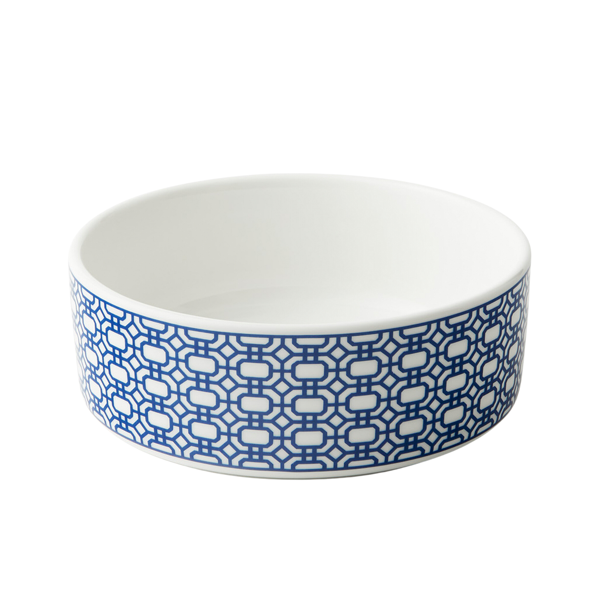 Your pets deserve beautiful dinnerware too! Made from creamy white premium porcelain, our new pet bowls are the perfect gift for your furry friends (and for you!). A garden gate lattice circles this pet bowl, in Newport's classic and crisp blue and white geometrics on premium porcelain. Click images for greater detail.