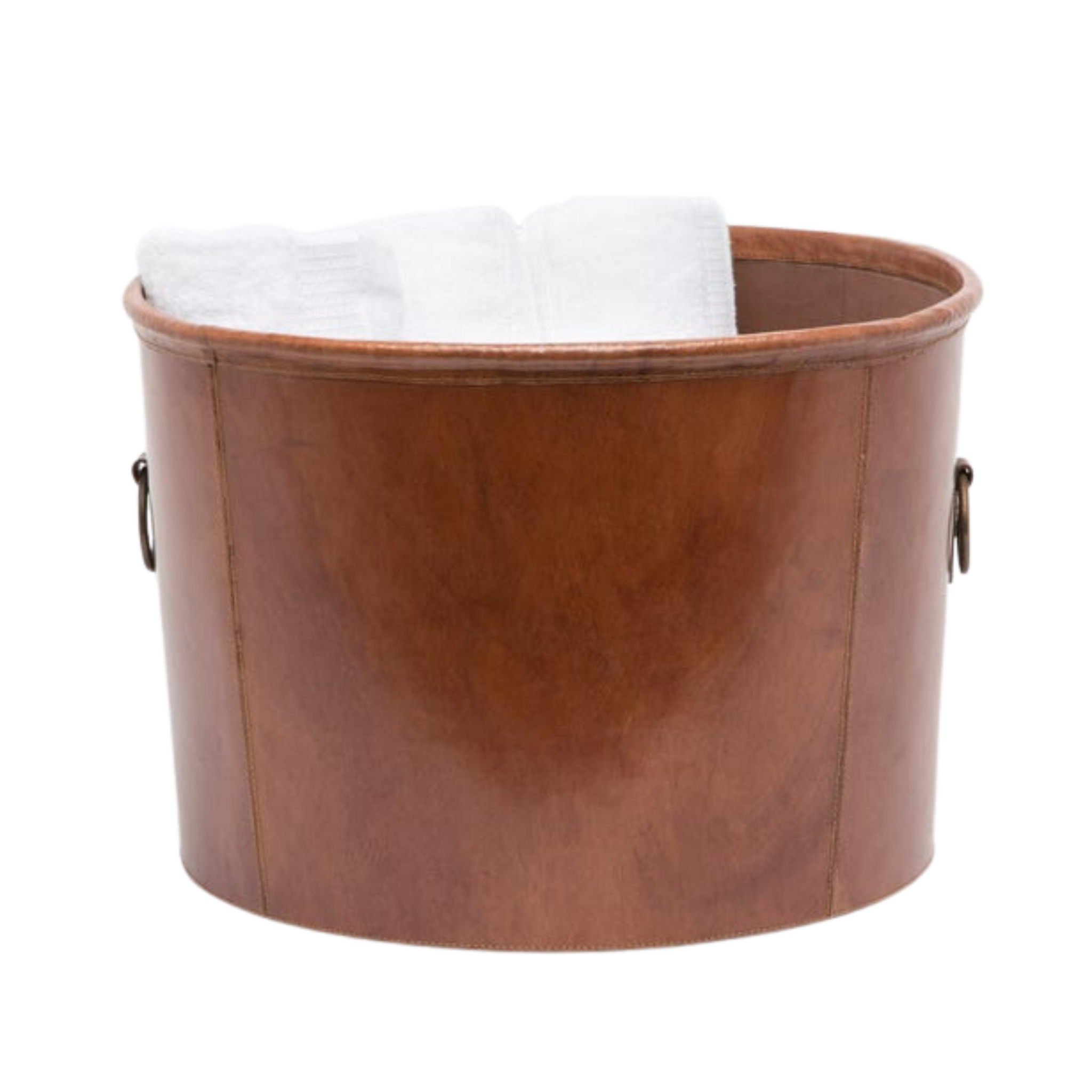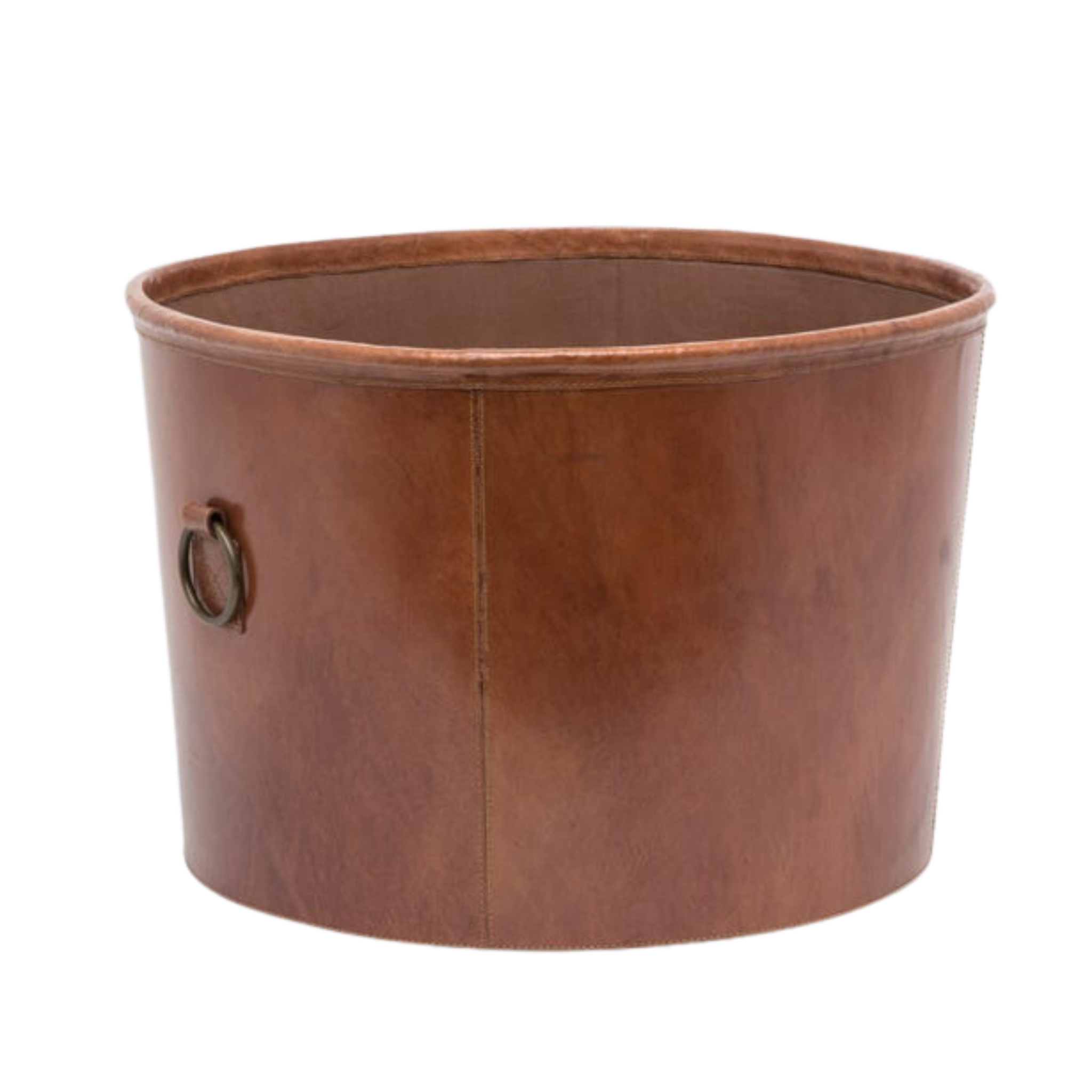 Ogden Round Full-Grain Leather Basket in Tobacco