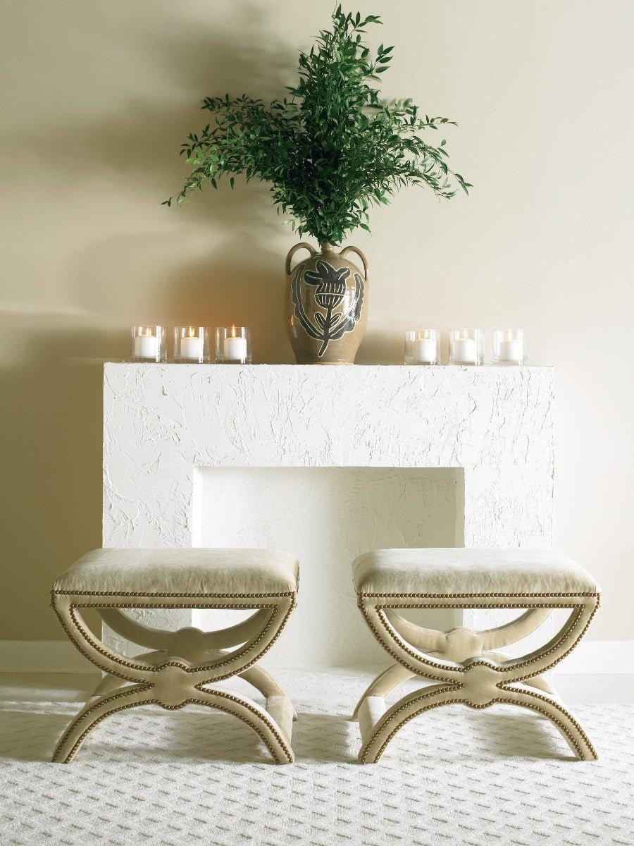A sophisticated blend of comfort and design, this upholstered bench ottoman features a fully cushioned seat and gracefully curved legs, all wrapped in matching fabric for a cohesive, tailored look. The upholstered legs add a soft, sculptural element that enhances the piece’s elegance, making it an eye-catching accent for living rooms, bedrooms, or dressing areas. Whether used as additional seating, a footrest, or a statement piece, this ottoman exudes timeless charm and versatile style.