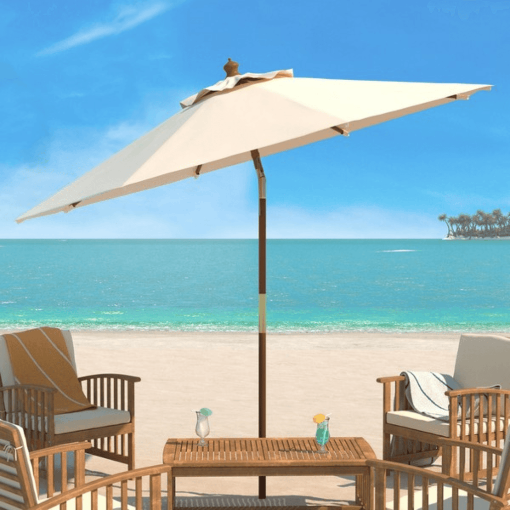 Serene and soothing, Arizona’s most revered spa retreat inspired the timeless style of this nine-foot wooden umbrella. Designed to blend seamlessly into any tasteful décor, its neutral beige hue makes it an investment for a healthy outdoor lifestyle. This umbrella measures 105.51"W X 105.51"D X 98.82"H open and 6.1"W X 6.1"D X 98.82"H closed. Click on images for greater detail.