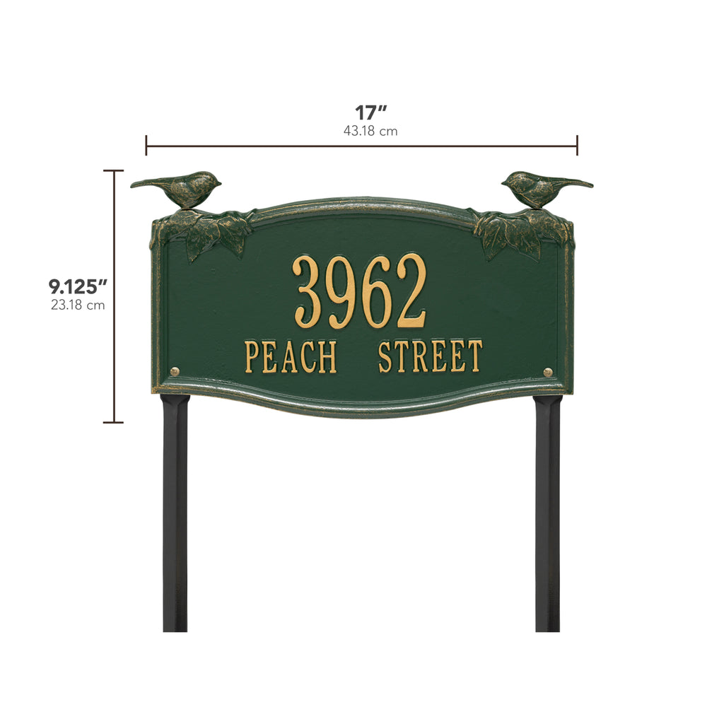 - Chickadees and the timeless charm of vines, our personalized lawn plaque adds a touch of sophistication to any garden or lawn. Meticulously crafted with attention to detail and durable materials, it withstands the elements while infusing your outdoor space with personalized charm.