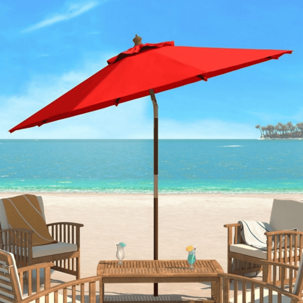 Serene and soothing, Arizona’s most revered spa retreat inspired the timeless style of this nine-foot wooden umbrella. Designed to blend seamlessly into any tasteful décor, its beautiful red hue makes it an investment for a healthy outdoor lifestyle. This umbrella measures 105.51"W X 105.51"D X 98.82"H open and 6.1"W x 6.1"D x 98.82”H closed. Click on images for greater detail.