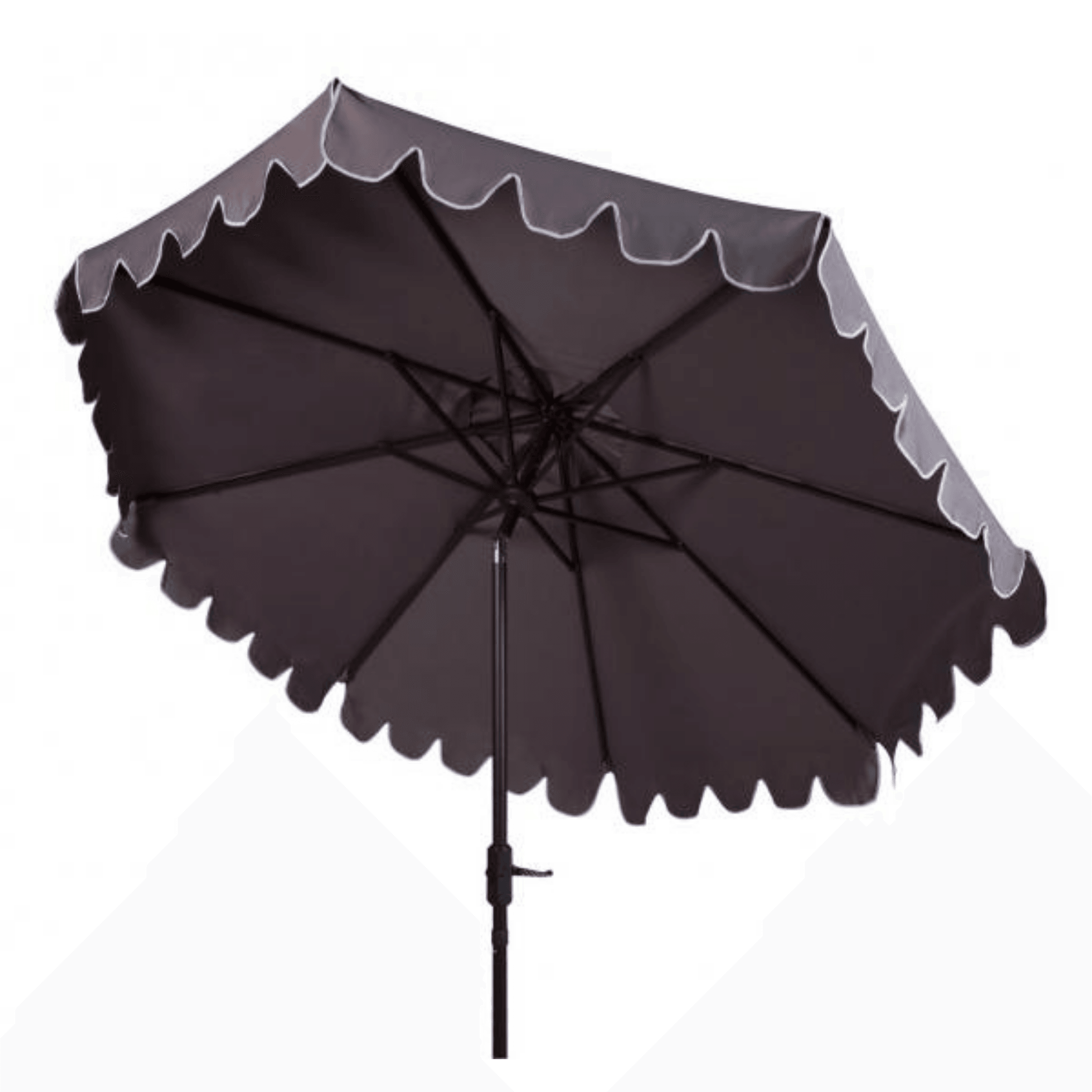 Taupe Scalloped Outdoor Umbrella With White Trim