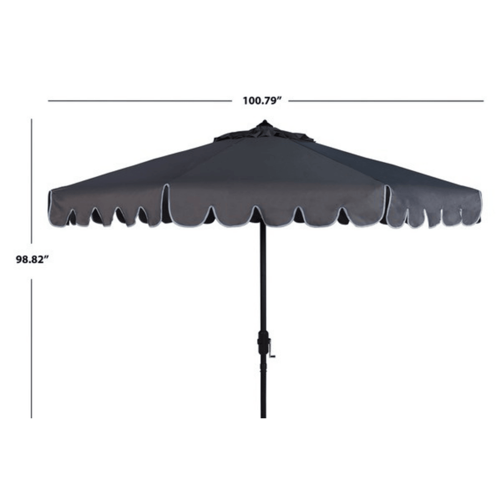 The signature white and blue coloration of Santorini’s lush legendary resort-inspired this nine-foot crank umbrella. Its sophisticated taupe hue features a single scallop white trim to create an outdoor retreat for the modern tastemaker. When open this umbrella measures 100.79"W X 100.79"D X 98.82"H. and when closed it measures 6.1"W x 6.1"D x 98.82”H. Click on images for greater detail.
