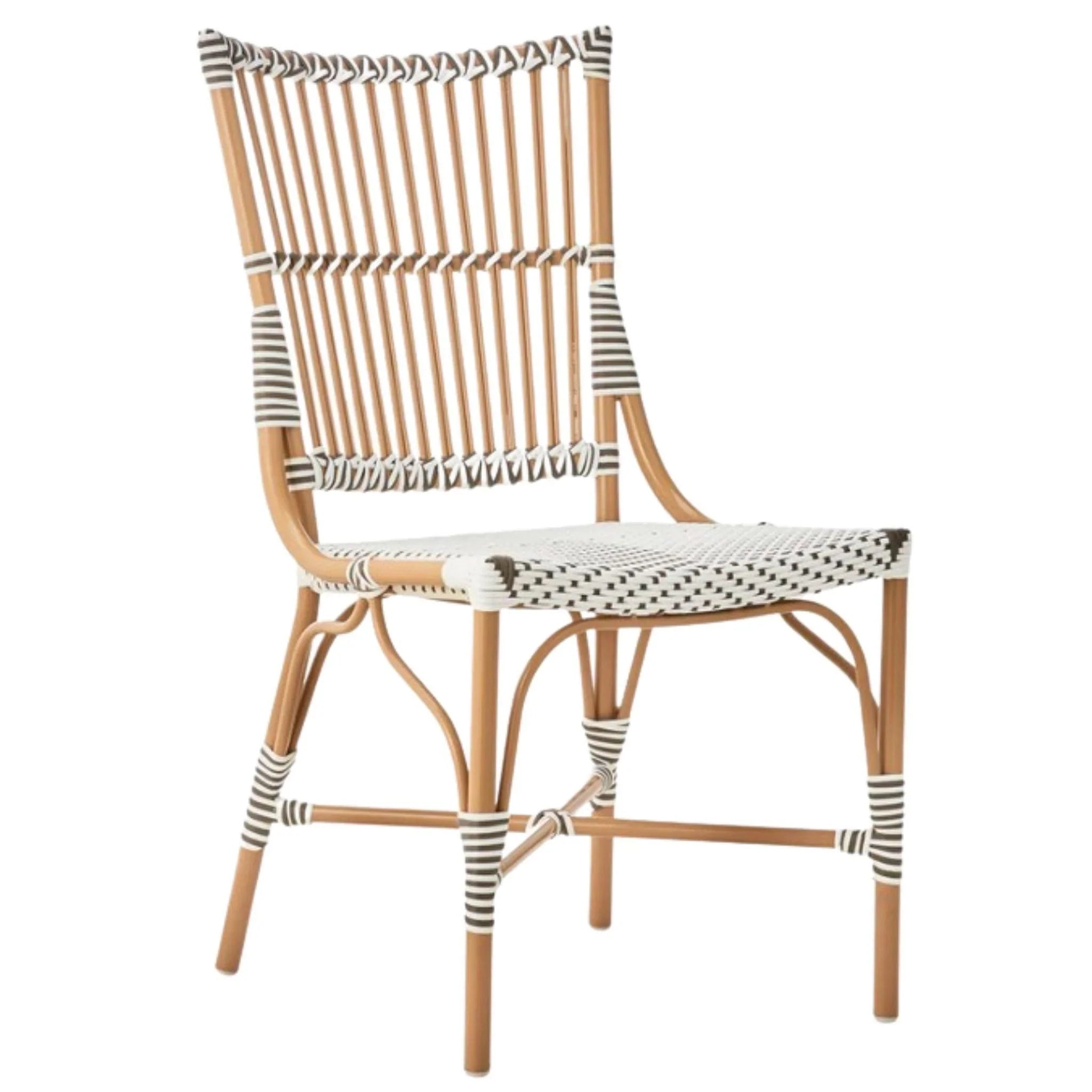 This bistro style chair preserves all the upscale European flair you want but with the addition of a sturdy aluminum frame it's able to withstand year-round outdoor use and inclement weather of any kind. It is ideal for patios, terraces, decks and gardens, and is a favorite choice for outdoor seating at restaurants. AluRattan® is powder-coated aluminum bent to mimic the curves of natural rattan. The powder coating ensures a surface resistant to knocks and scratches. The material is well-suited to be left outside all year long and is easy to clean. Measures 36.6" x 21.3" x 24.4 ". Click image for greater detail.