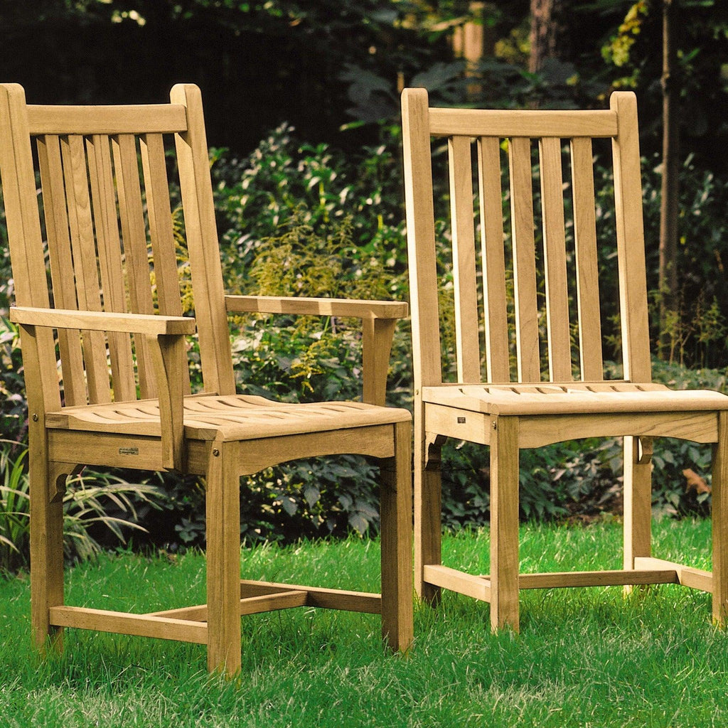 The collection of Classic items shares a common theme: well-designed traditional furniture with touches of American Craftsman style. The Classic dining armchair is constructed from solid teak for exceptional quality and features a scooped seat.