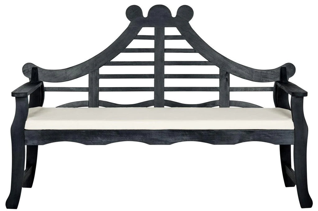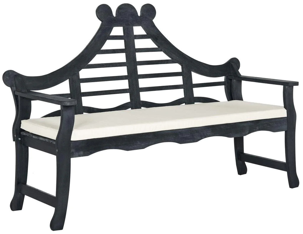 Inspired by Asia’s majestic outdoor gardens, the exotic style of this bench is at home in traditional or classic outdoor decor. Its lavishly carved details with a rich dark slate grey finish and plush beige cushion make it a modern heirloom. It measures 26.4" x 62.8" x 42.5". Click on images for greater detail.