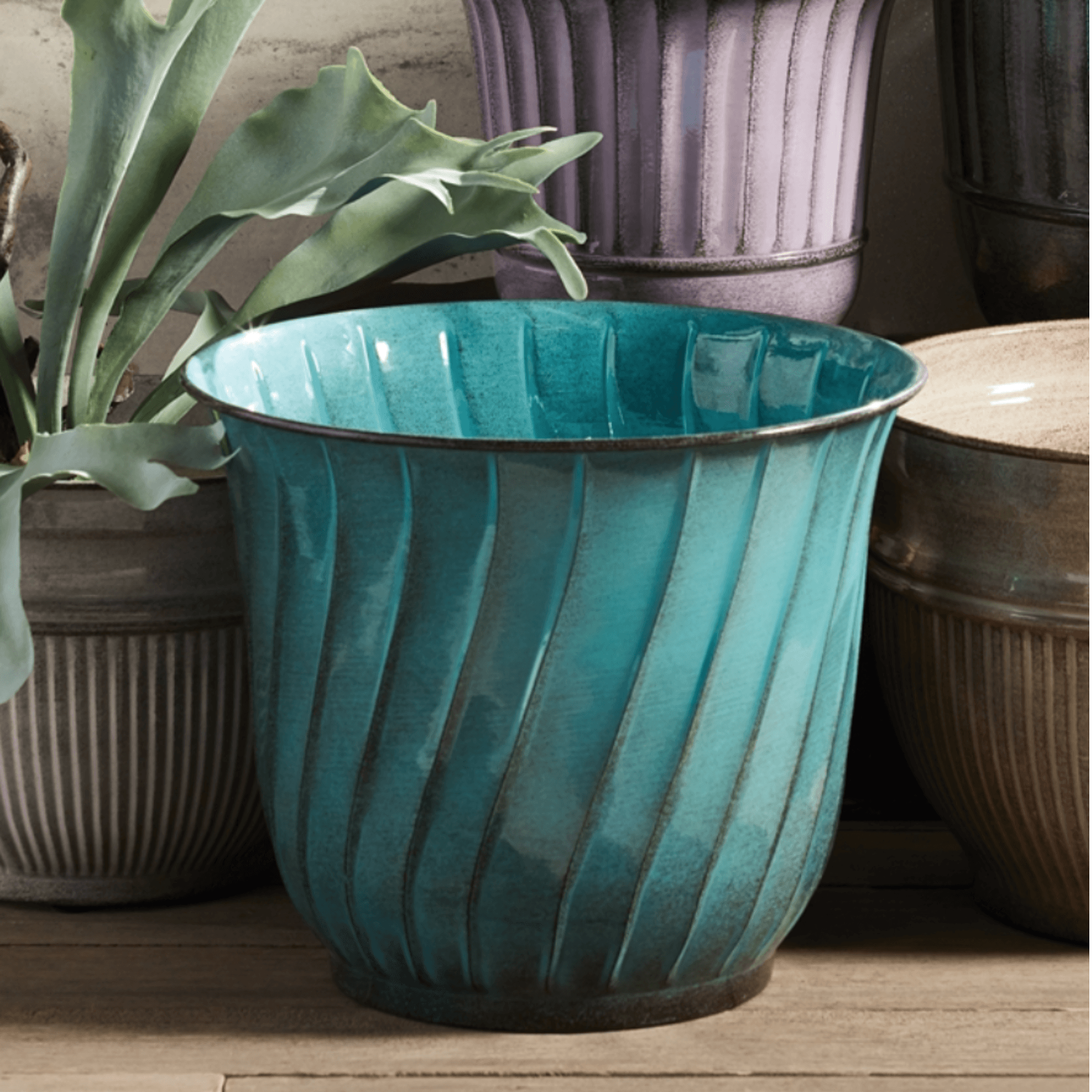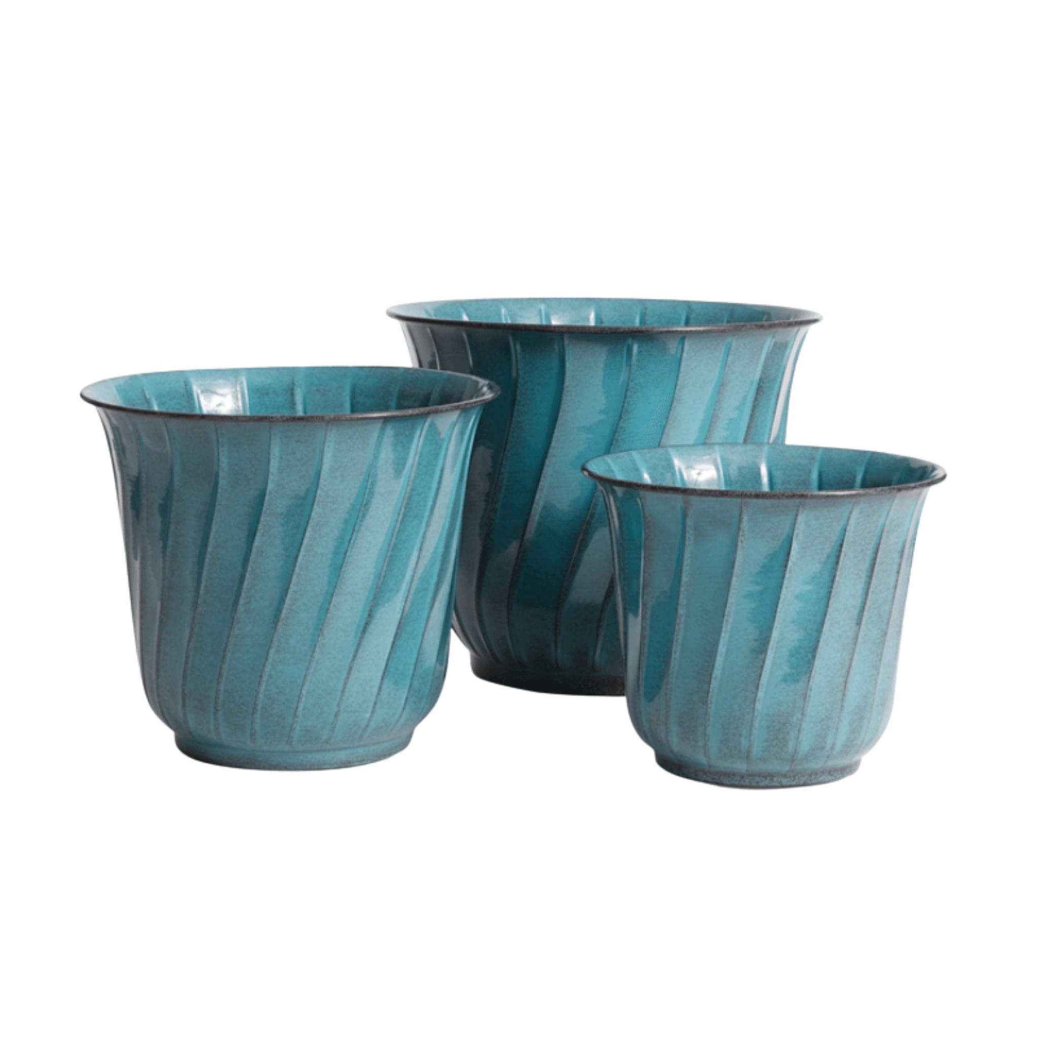 Set of 3 Teal Glazed Metal Curvy Leilani Flower Pots
