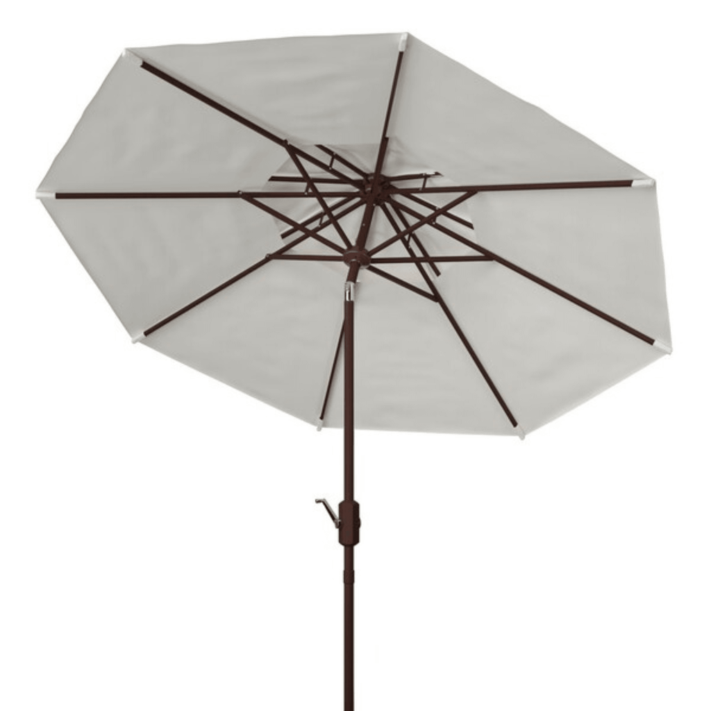 Keep your outdoor living area stylishly shady with this lovely umbrella. A chic update of the classic market umbrella with its fabulous double top and crisp white tone, it's a must-have for any backyard. When open this umbrella measures 101.18"W X 101.18"D X 99.61"H and when closed it measures 6.69"W X 6.69"D X 99.61"H. Click images for greater detail.