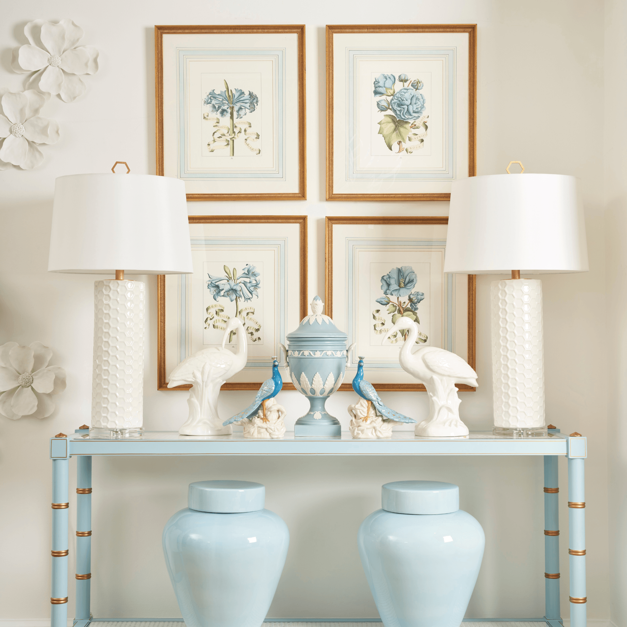 Blue Flowers with Ribbon Artwork in Gold Frame III