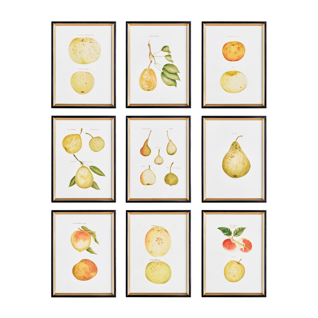 Set of Nine Framed Assorted Fruit Prints Wall Art