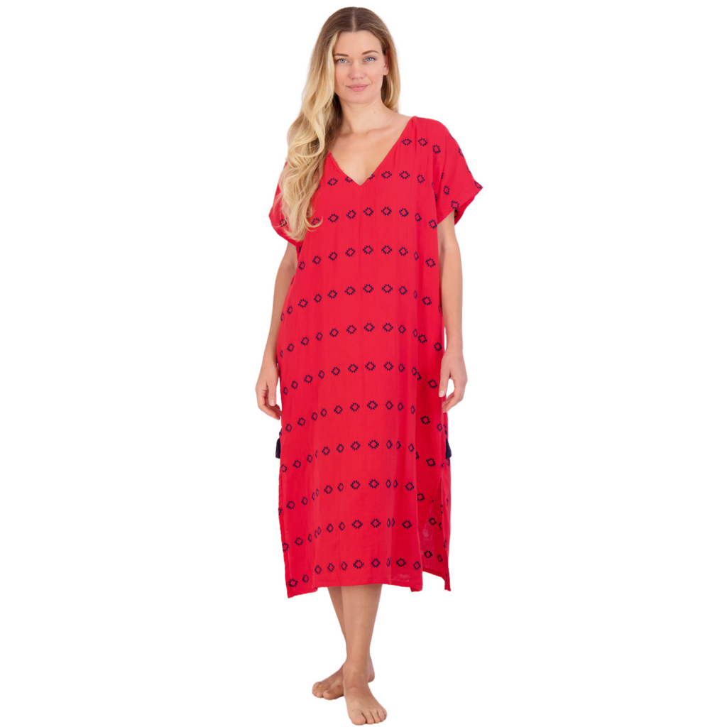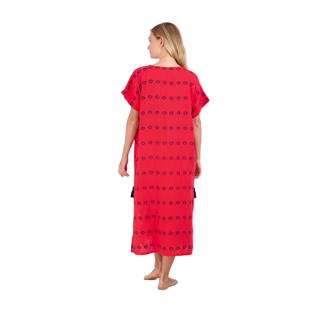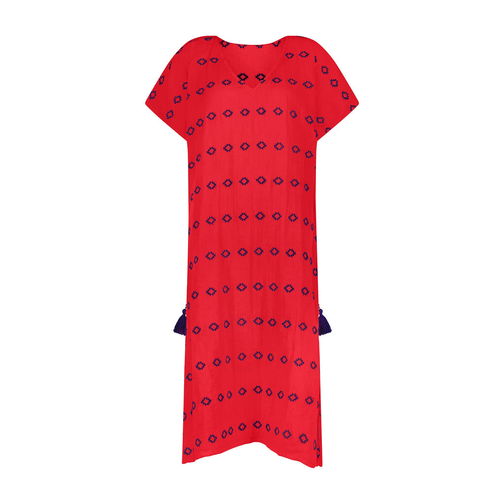 Capucine Women's Maxi Caftan Dress Red Embroidery