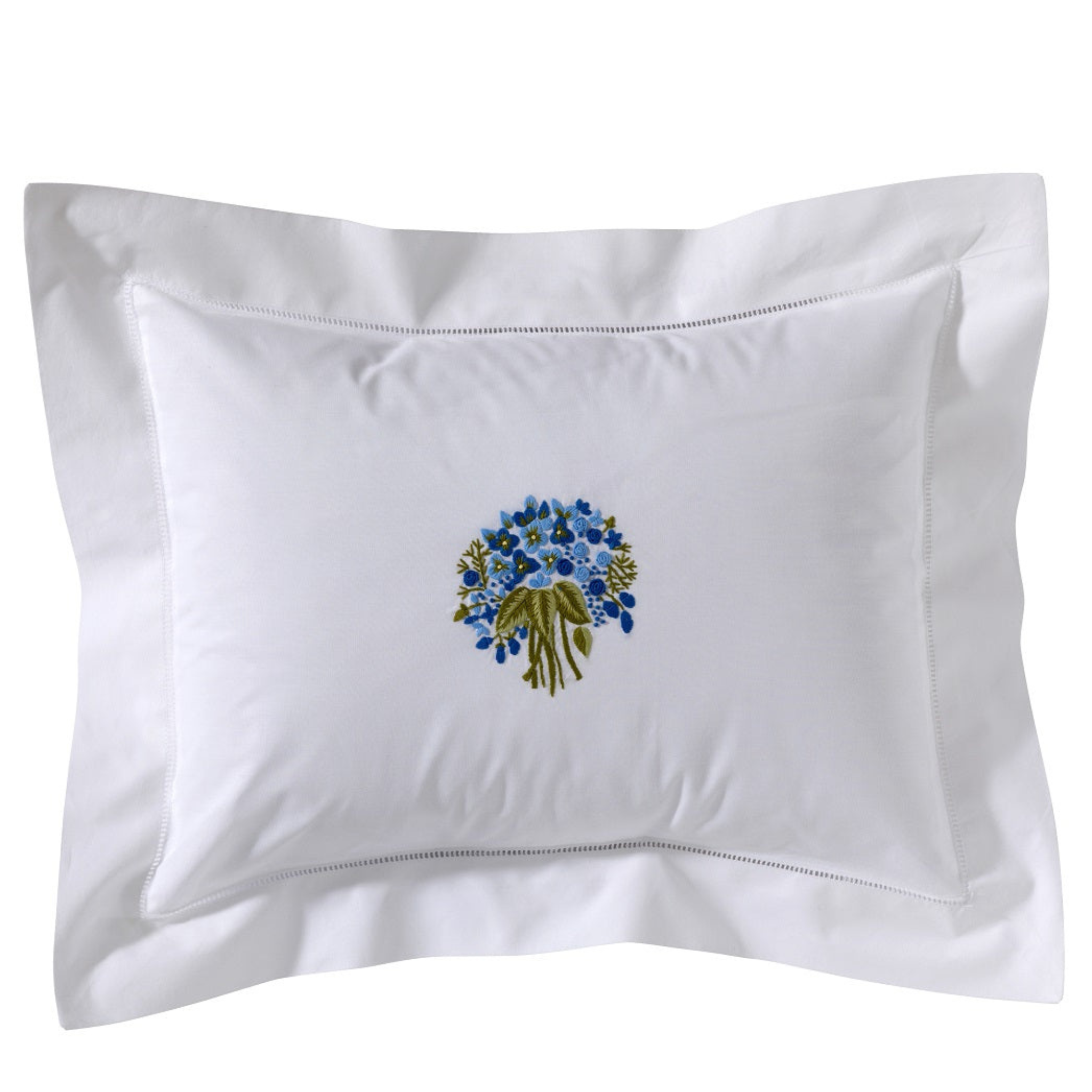 Boudoir Pillow Cover with Embroidered with Hem Stitch in Floral Bouquet Blue