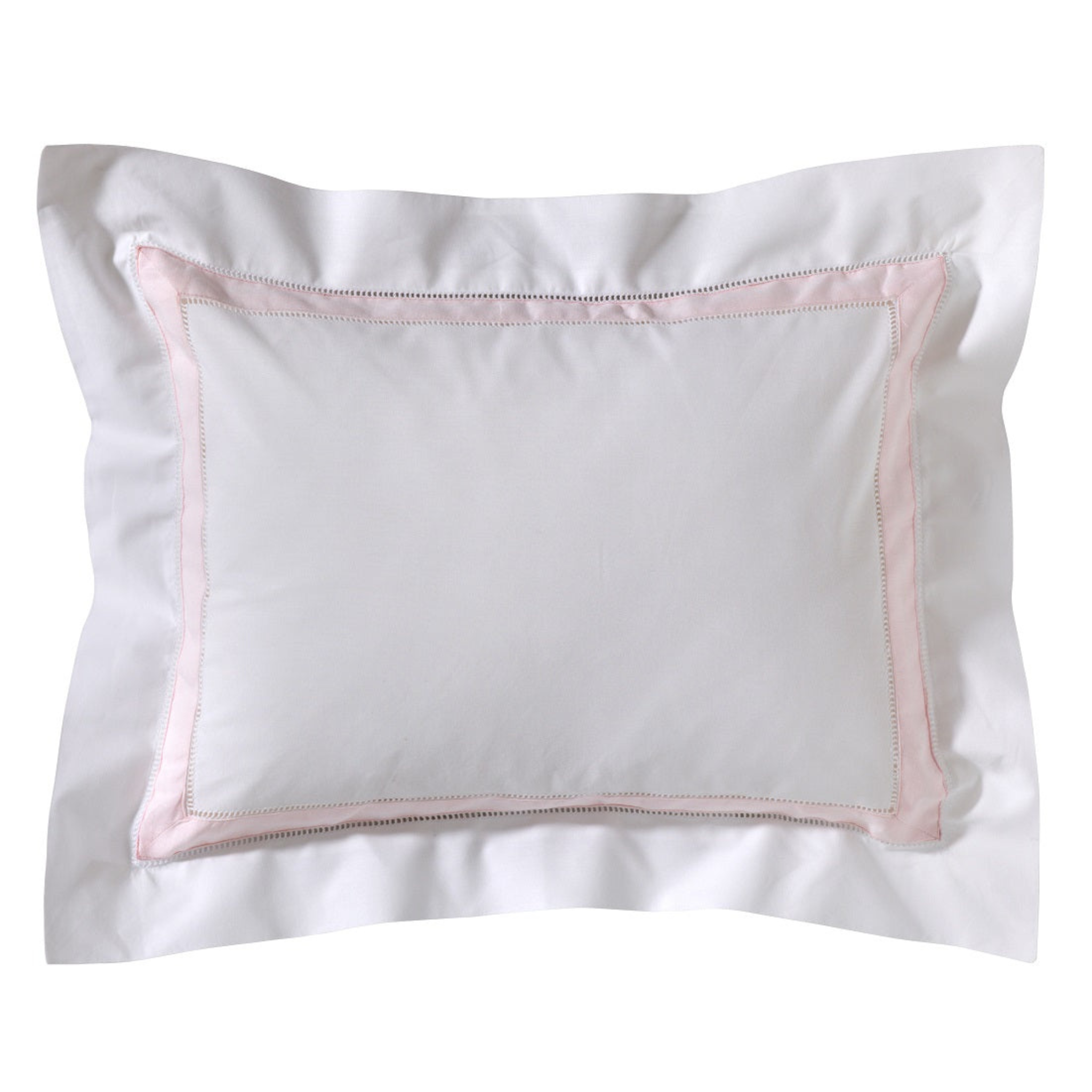 Boudoir Pillow Cover with Hem Stitch & Cotton Percale Trim in Pink