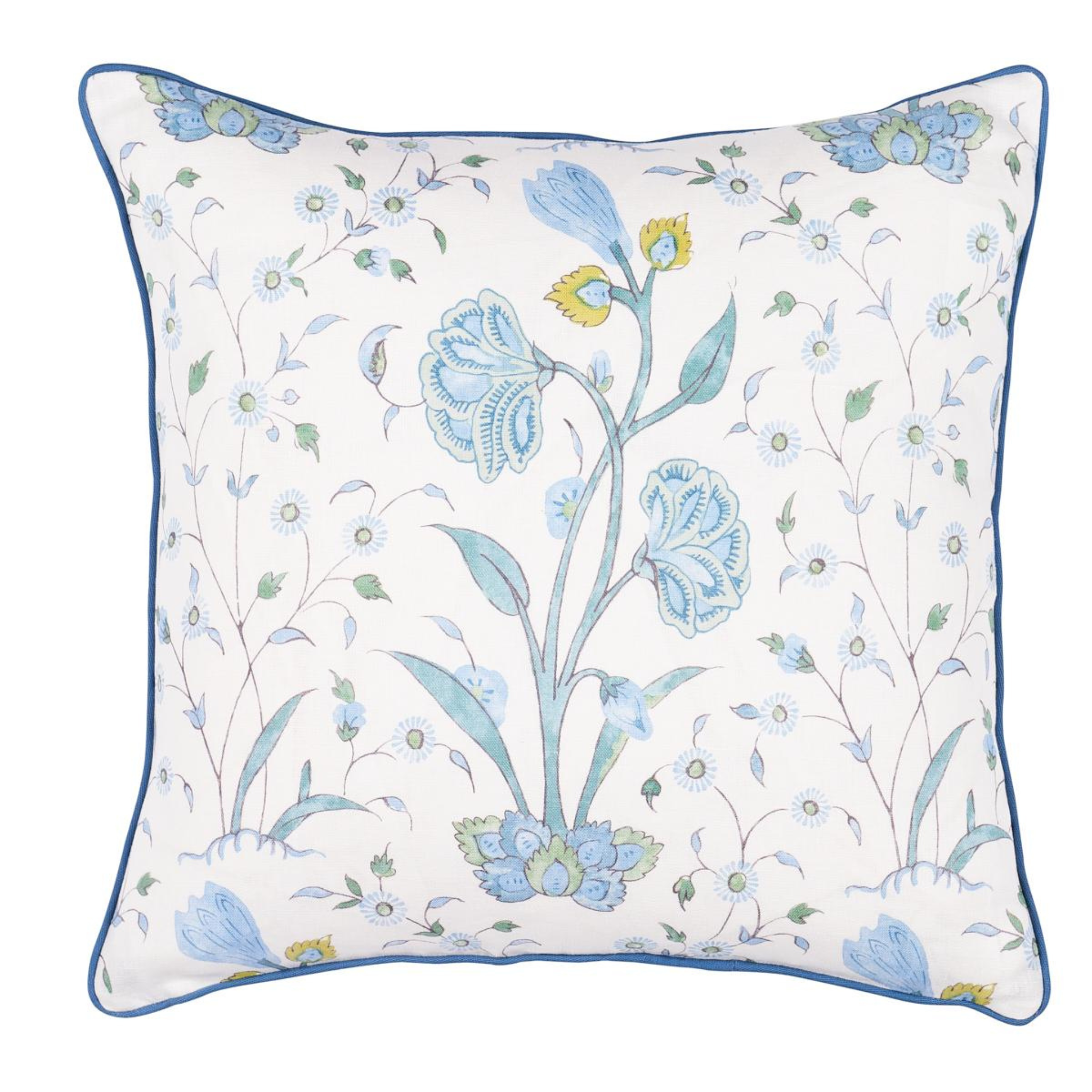 This pillow features Khilana Floral with a welt finish. A simple, stylized floral inspired by traditional Indian motifs, this lovely, large-scale pattern has the nuanced look of a hand block print. Welt content: 100% cotton. Pillow includes a feather/down fill insert and hidden zip closure.
