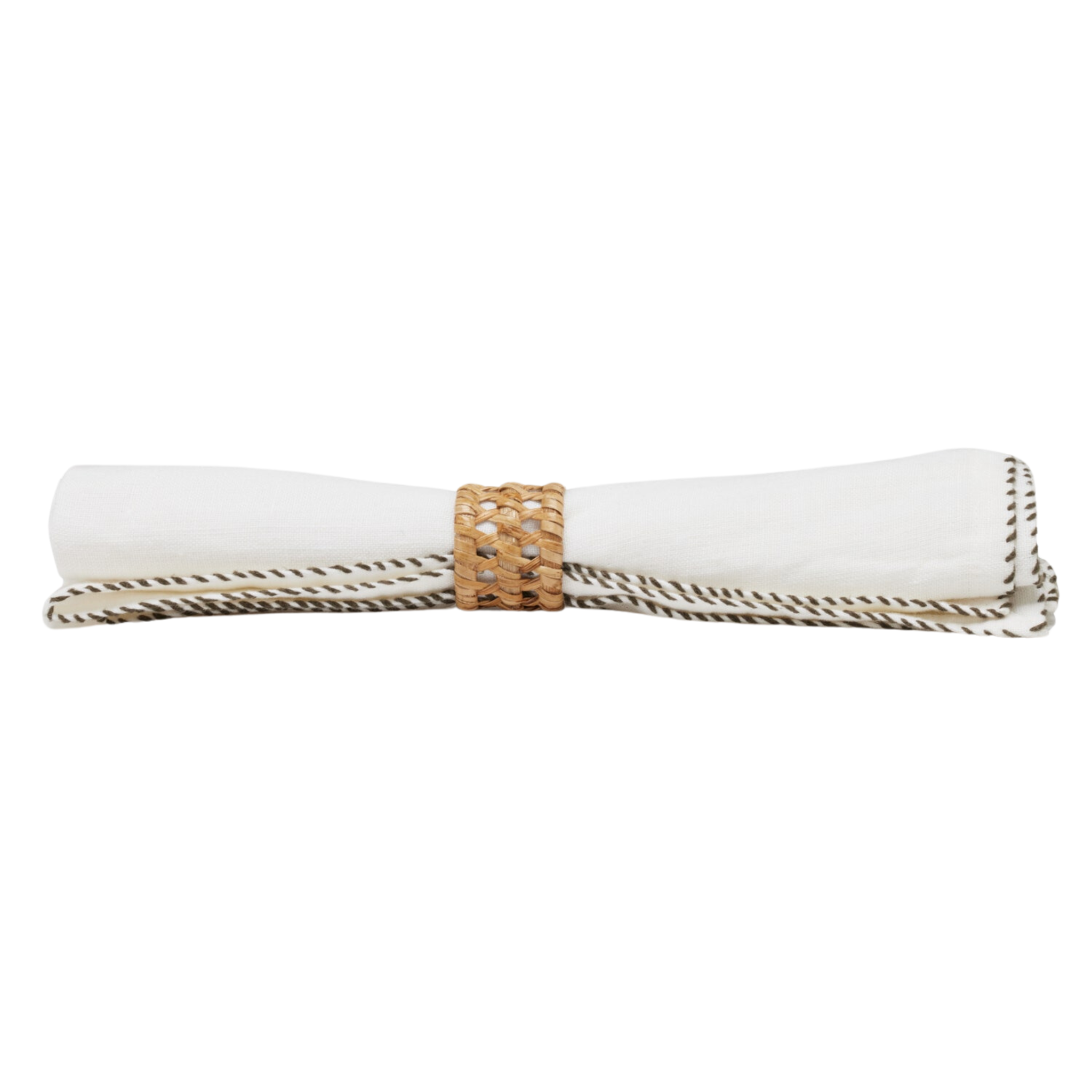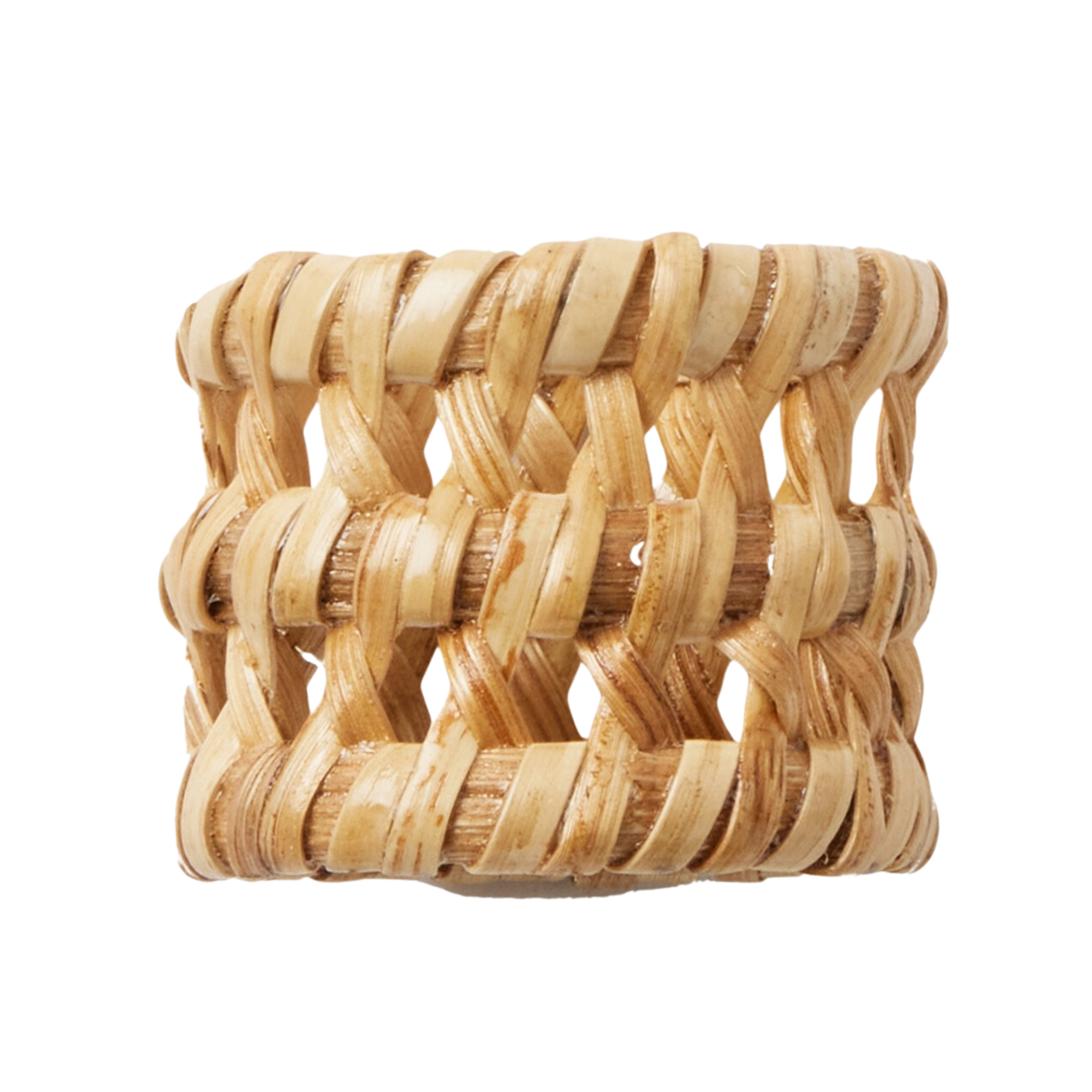 The Carly napkin rings are woven from lightweight, durable rattan and add a casually chic touch to any tablescape. Sold in a set of four.
