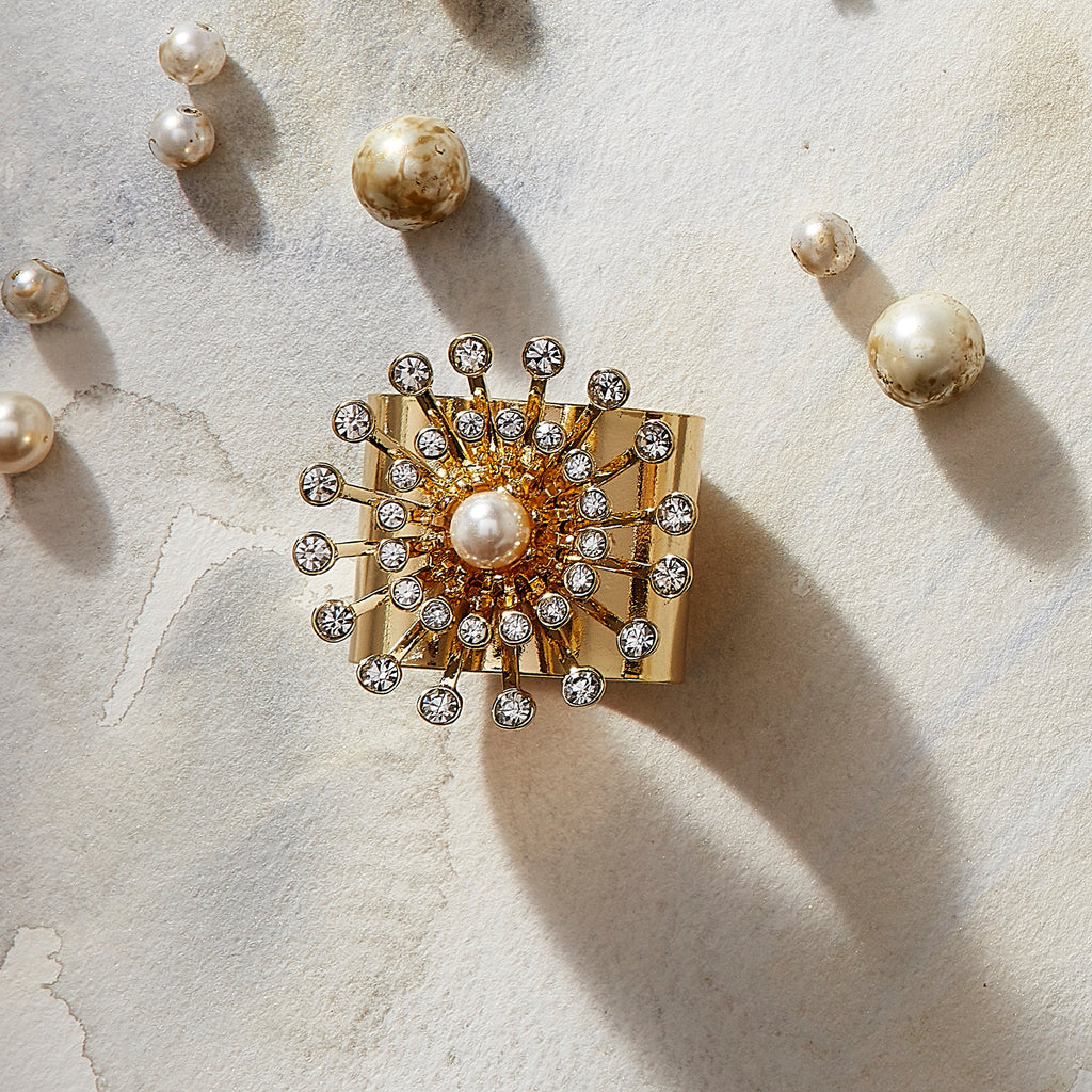 We can't get enough of the pearls! Big trends in fashion – celestial and pearls – equals a big trend for us in tabletop! These napkin rings feature a beautiful faux pearl and sparkling crystals sure to be a tabletop stunner at your next dinner party.