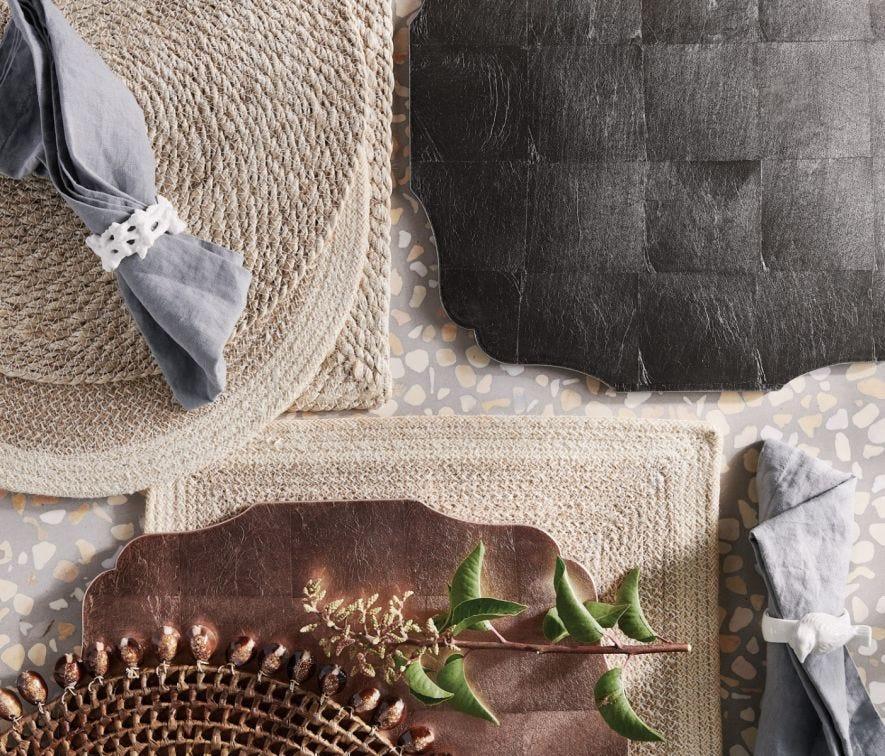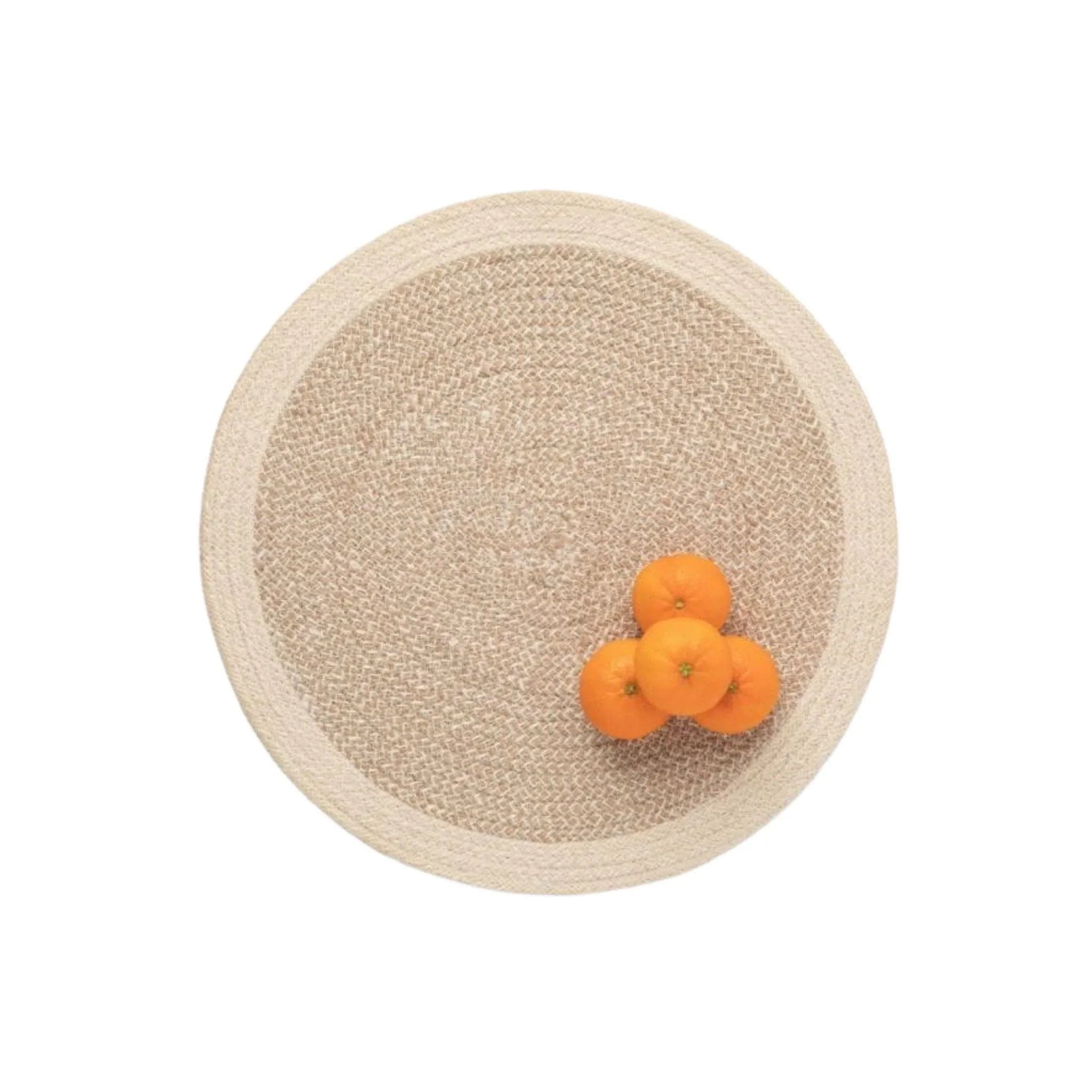 Two colors of cotton jute are texturally woven in the Shia placemat, giving it a rustic charm and two-tone aesthetic. The set includes four placemats.