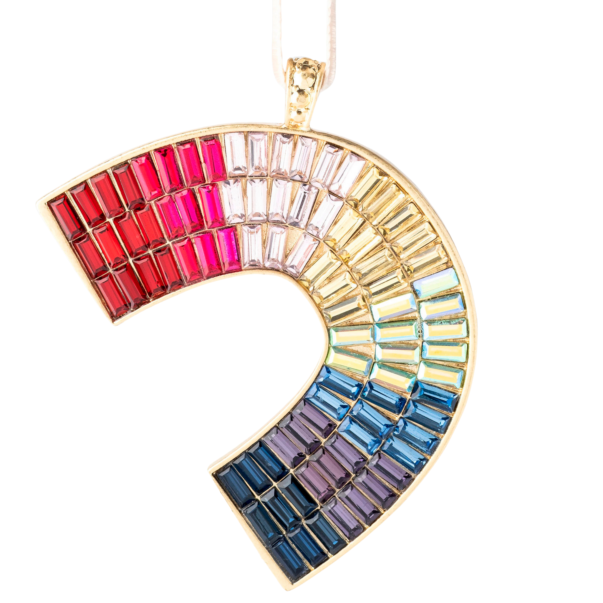 These ombre baguette glass stones make such a wonderful gift for those looking for their pot of gold! The Zoe Report just added this Rainbow hanging ornament as one of their top "dopamine-inducing" holiday gifts and we couldn't agree more! You can hang this rainbow on the tree, on the door, on your favorite bottle of spirits, anywhere you need a bit of color!