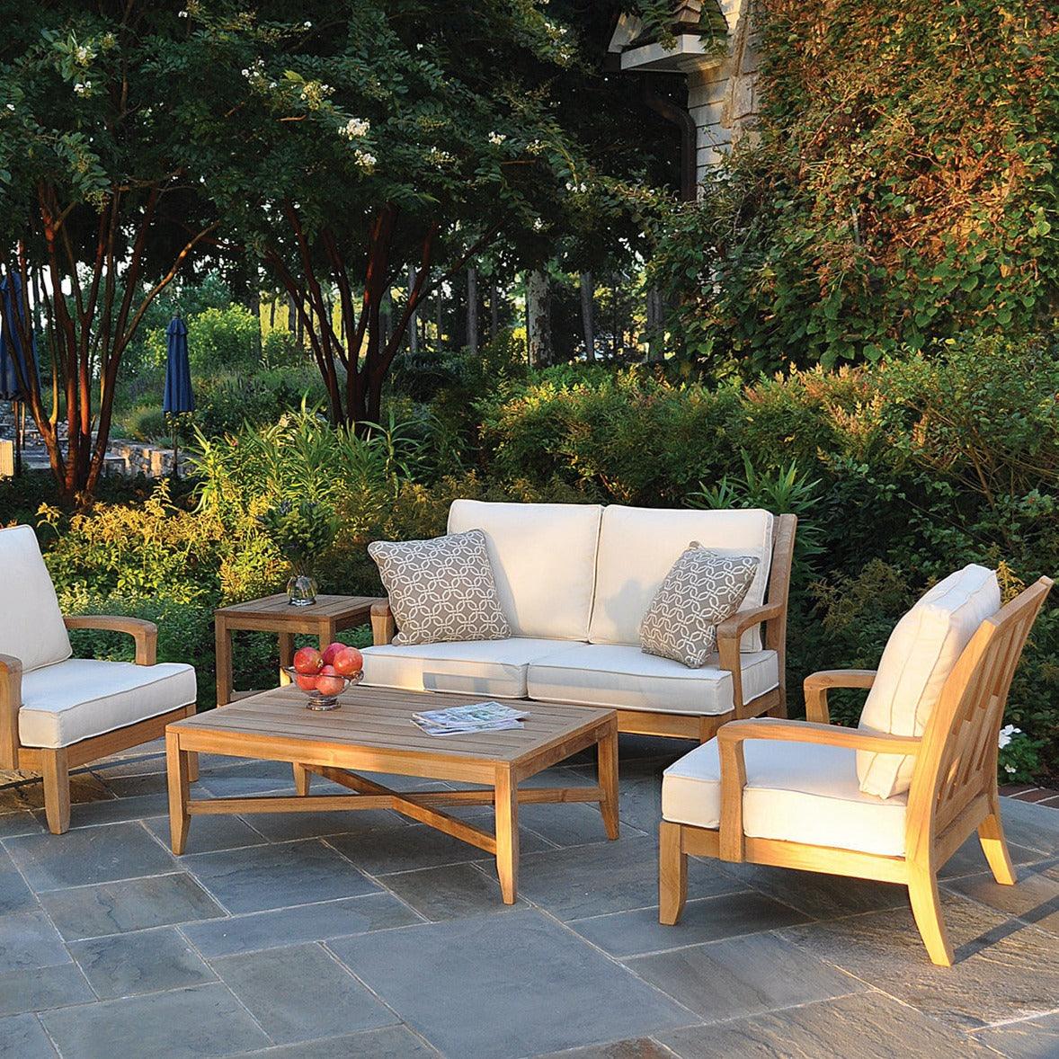 Inspired by the crisscrossed latticework of formal English gardens, the Somerset collection adds a touch of elegance to any outdoor setting! The Somerset deep-seating settee is crafted from solid teak for long-lasting enjoyment.