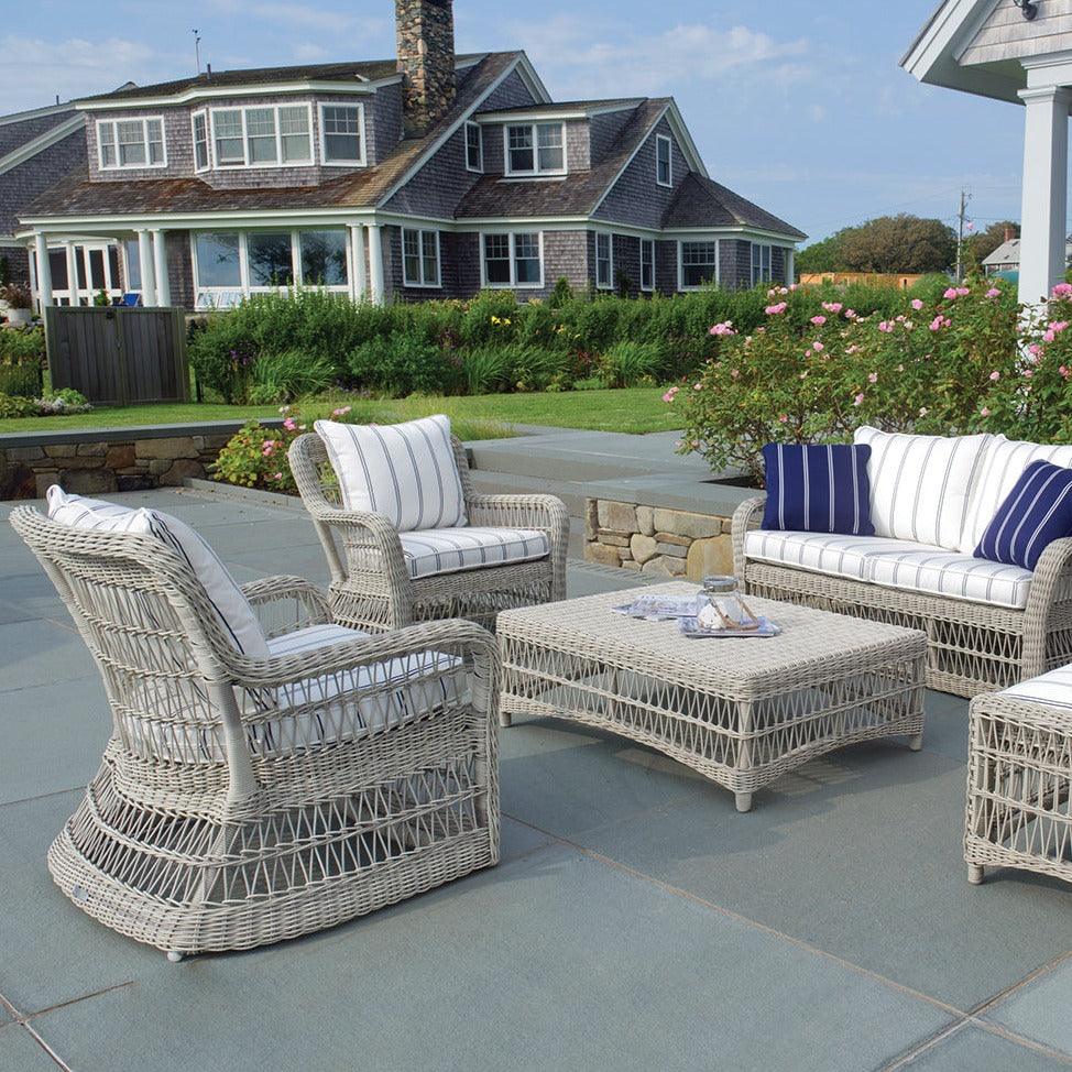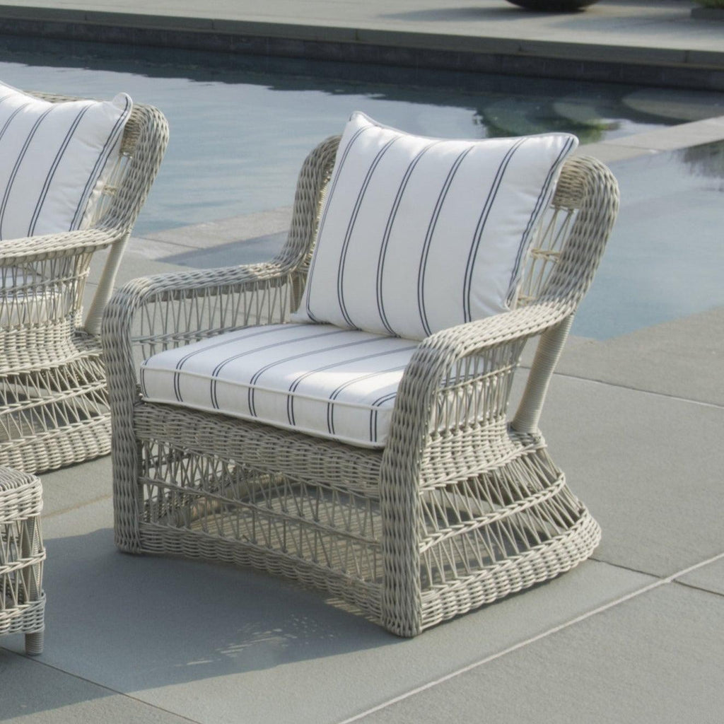 The Southampton deep-seating lounge chair is an updated version of the classic, open-weave wicker furniture. The lounge chair is hand woven using extra large wicker fiber, making it heavier and more substantial than typical outdoor wicker furniture.