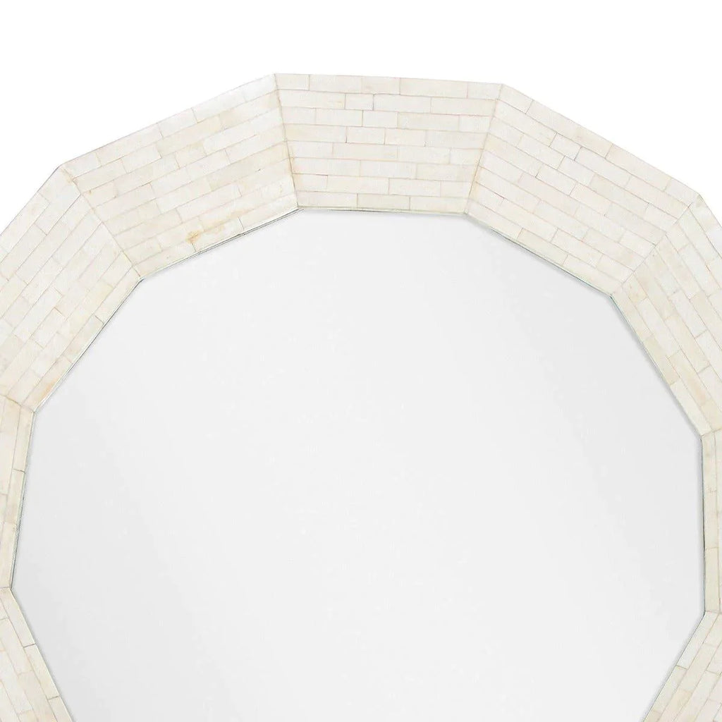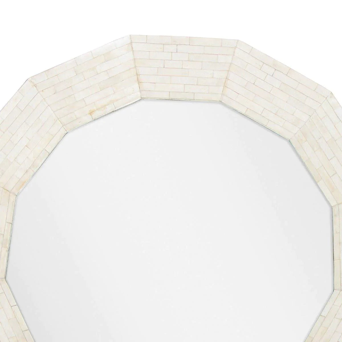 Ares has it all. The exquisite palette of natural bone, honed by skilled artisans, provides impeccable style and unique beauty in this handcrafted mosaic mirror design. As natural materials allow minor variations, no two are exactly alike.