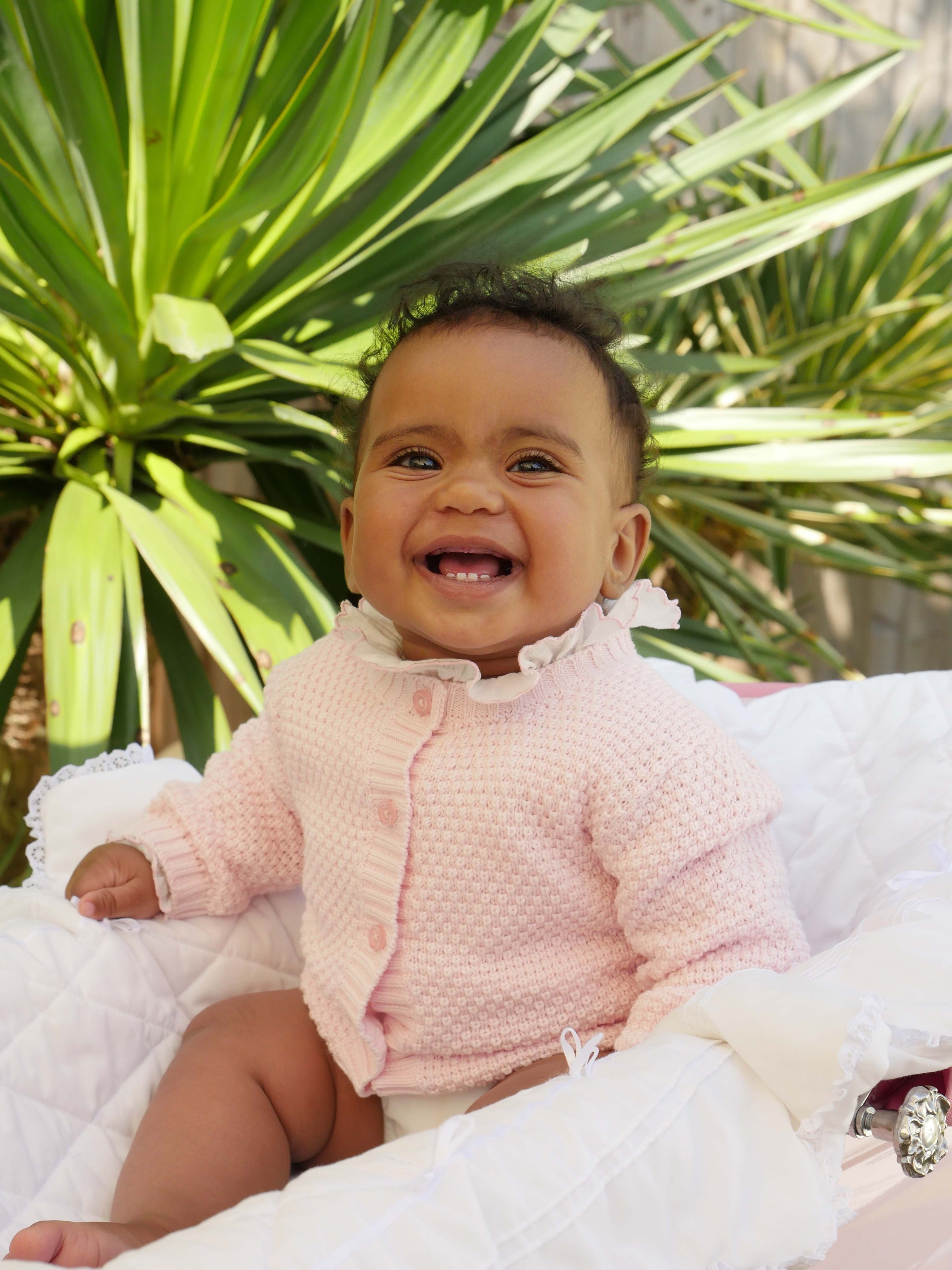 Beautiful premium in powder moss stitch round neck cardigan in 100% Cotton.