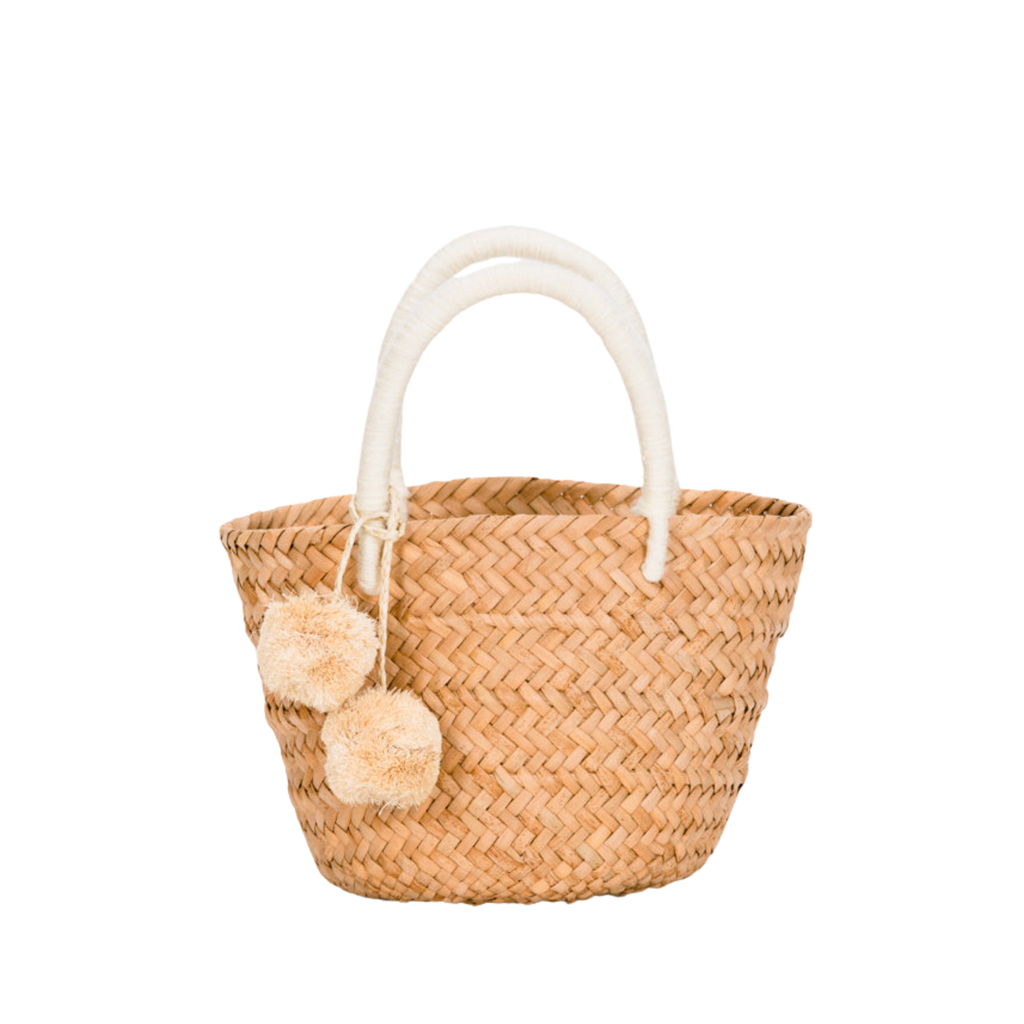 Mini St Tropez Pom Pom Straw Tote in Natural