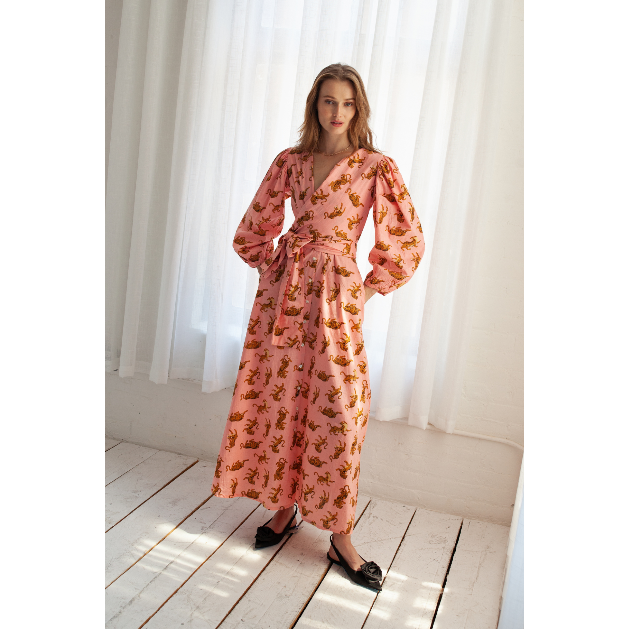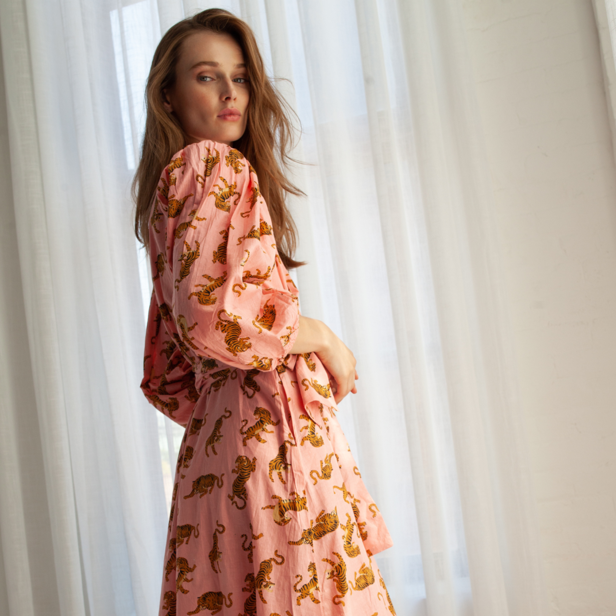 Our Monica Tiger Dress has great movement when you walk. The flowing and graceful style is inspired by our Latin American / Colombian heritage combined with elements of Indian culture. Every piece has been crafted with care and represents the eternal values of that tradition keep alive.
