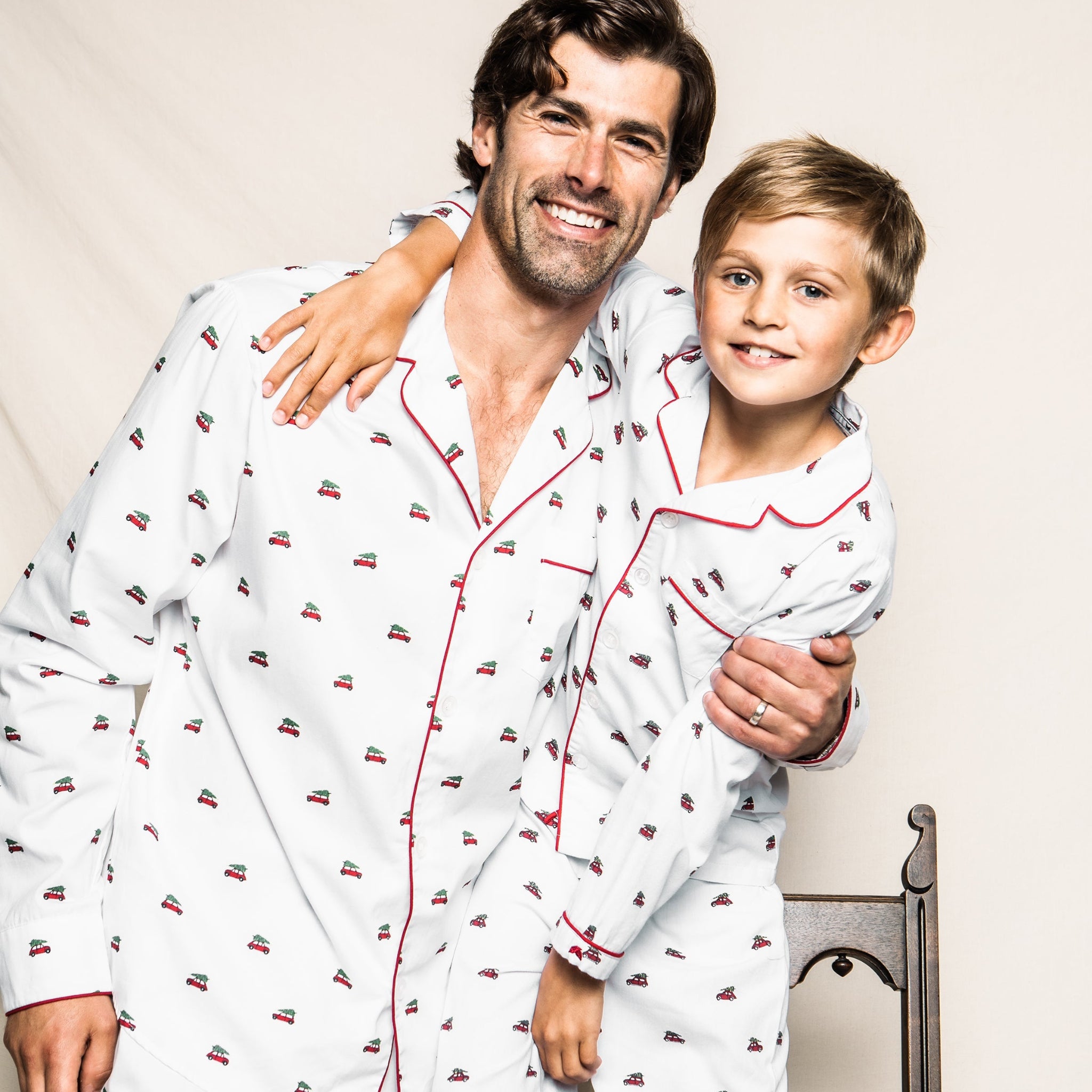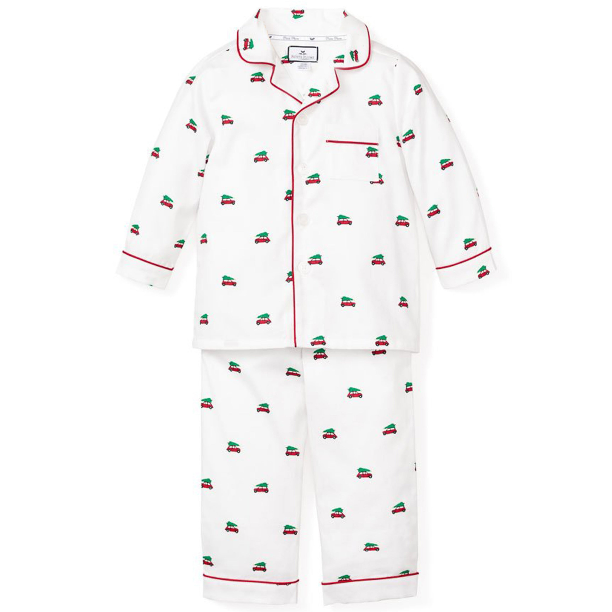 Red cars and mini trees will take you on a Holiday Journey. Nostalgic of holiday cheer, this print will bring you to the best time of the year. This classic pajama set is accented with red piping and finished with pearl buttons. The sleepwear is made from the finest quality cotton and blended with just enough inherently flame retardant fiber to allow it to pass strict CPSC flame retardant laws without using harmful chemicals. The fabric is brushed for added softness, making the sleepwear feel absolutely luxurious, getting cozier with each wash.
