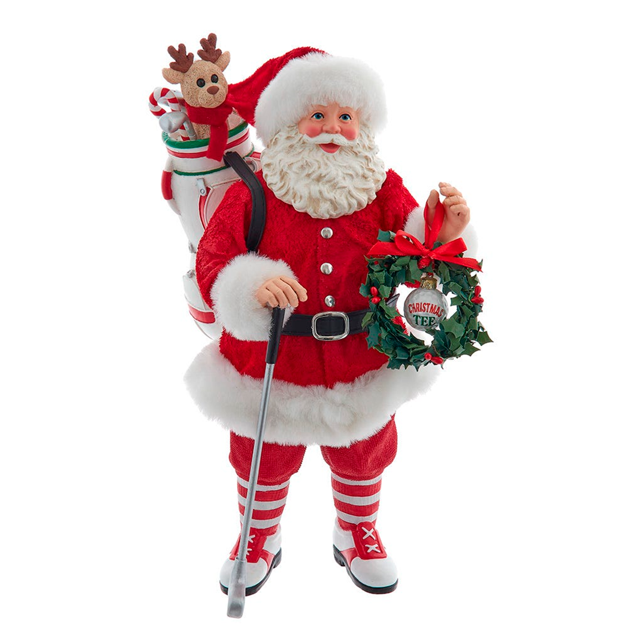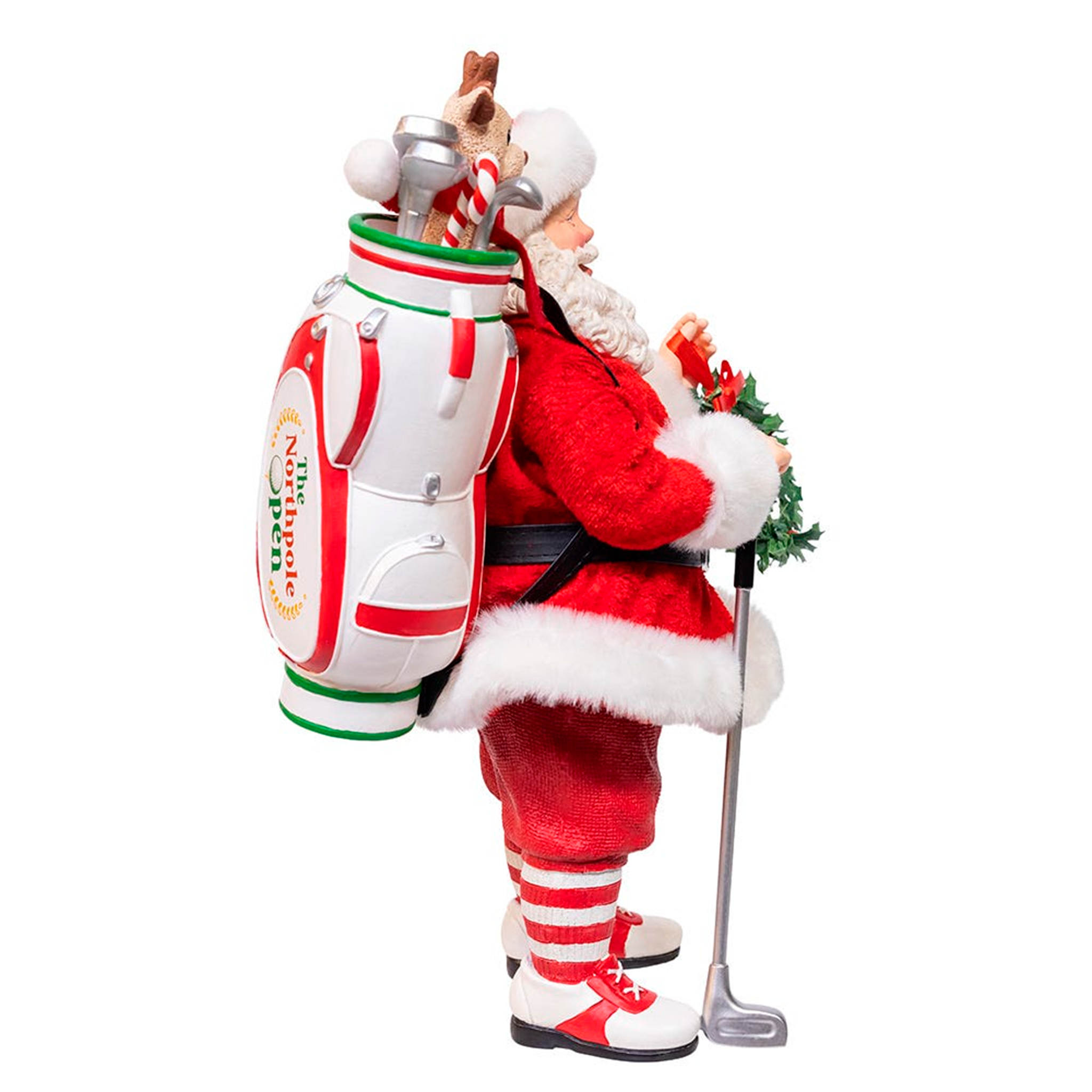 The 10.5" Fabriché™ Golf Santa adds playful charm to holiday décor. Featuring Santa dressed in festive golf attire with clubs in hand, this handcrafted figure blends Christmas spirit with sporting fun, making it a unique collectible and a perfect gift for golf lovers during the season.