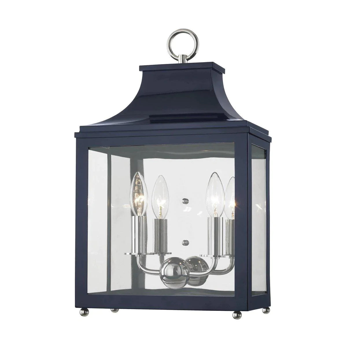 This lantern sconce offers a playful take on a classic design, featuring a schoolhouse-style metal structure.