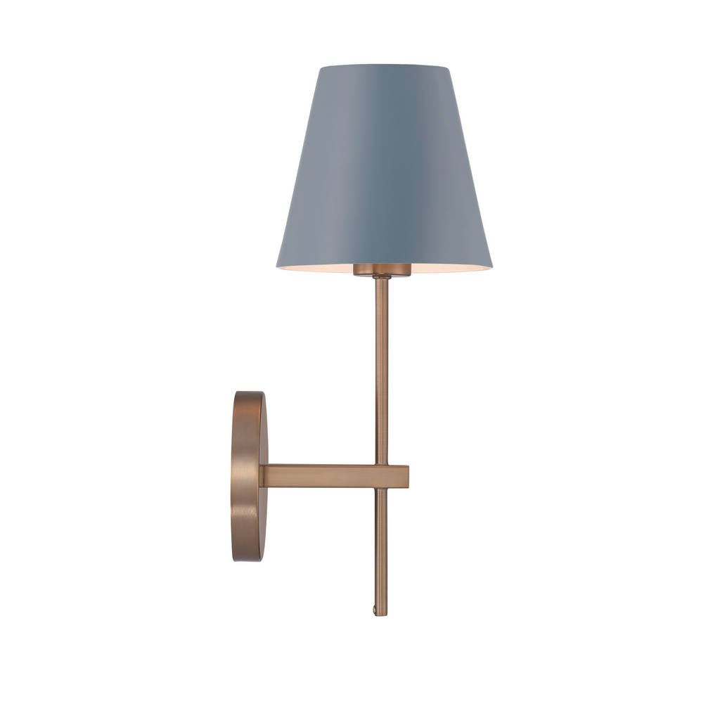 Vibrant Gold's soft finish meets soothing blue to create a harmonious blend of sophistication and tranquility. The blue-gray color has a rich undertone that is comforting and refreshing, while the Gold exudes a warmth of modern elegance. The functional and fashionable Xavier collection is versatile enough to fit into any interior. Stylish, modern, and minimal, the light features a tapered metal shade offering a livable look that is chic, stylish, and understated in just the right way. Click images for greater detail.