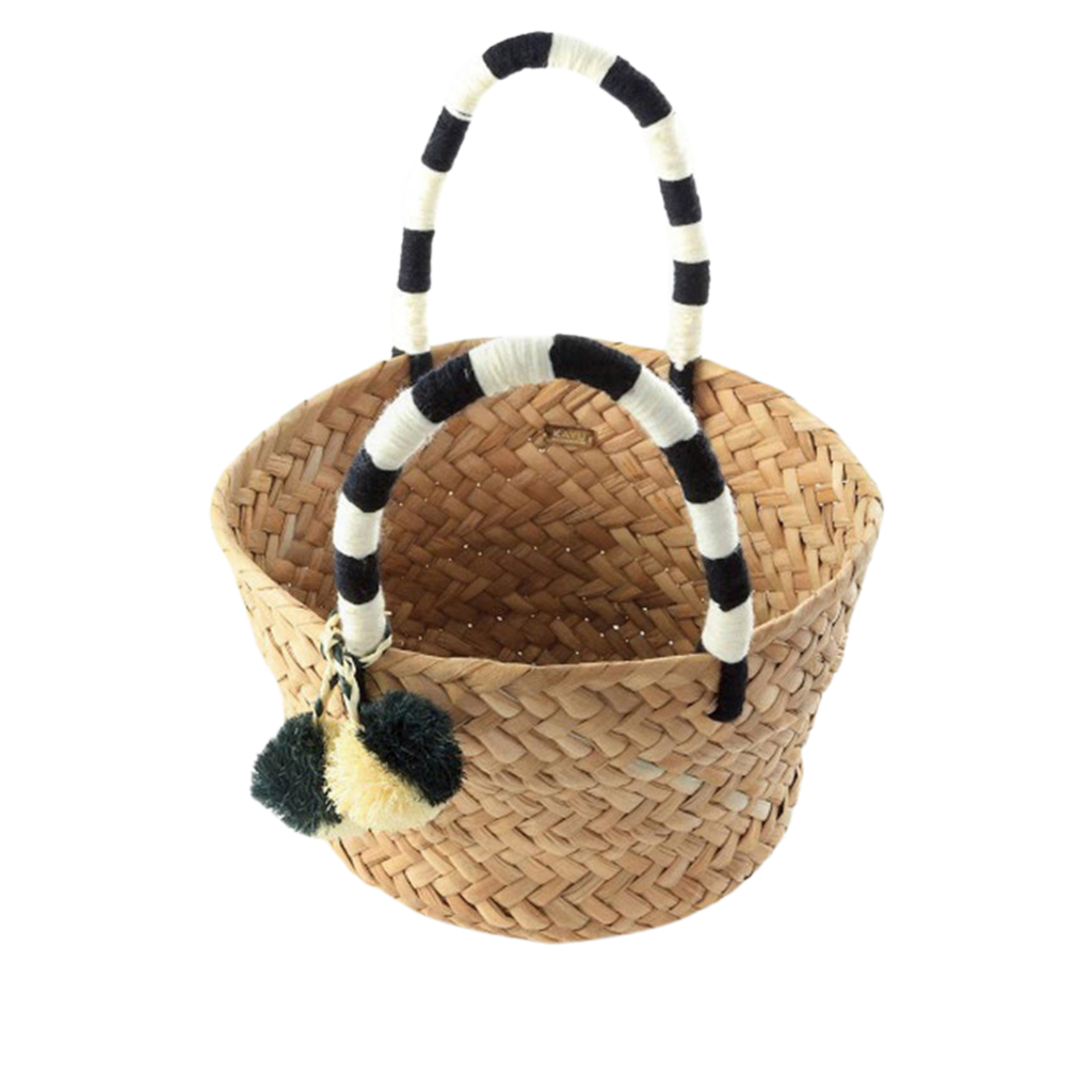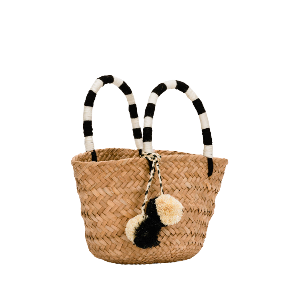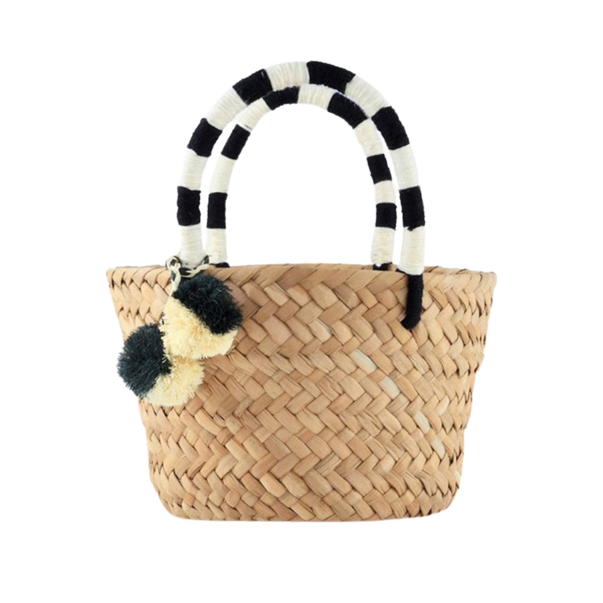 Mini St Tropez Pom Pom Straw Tote in Black and White