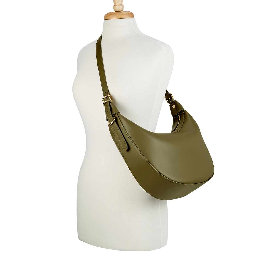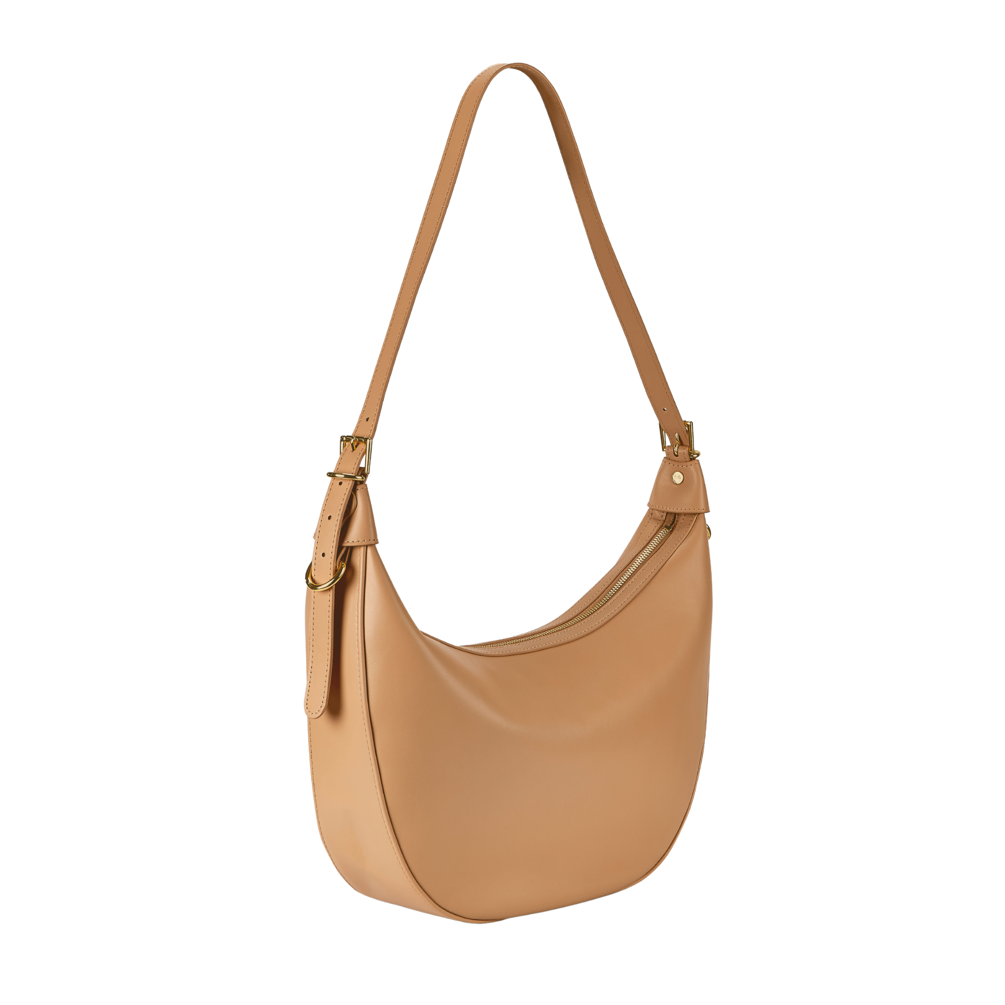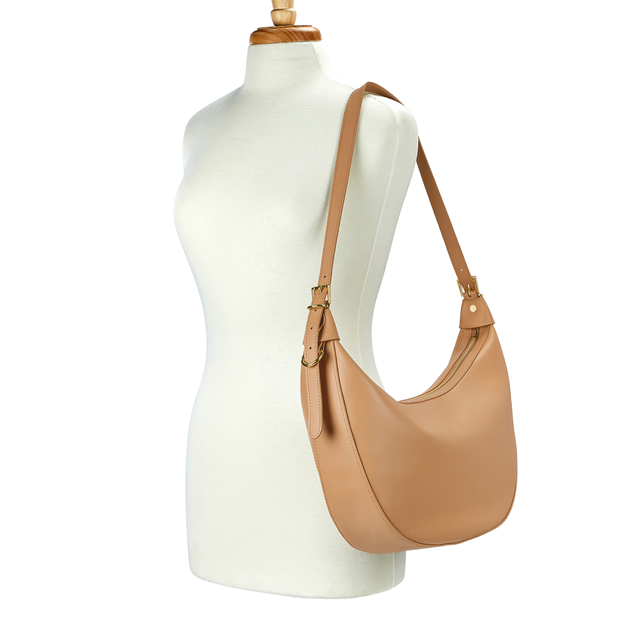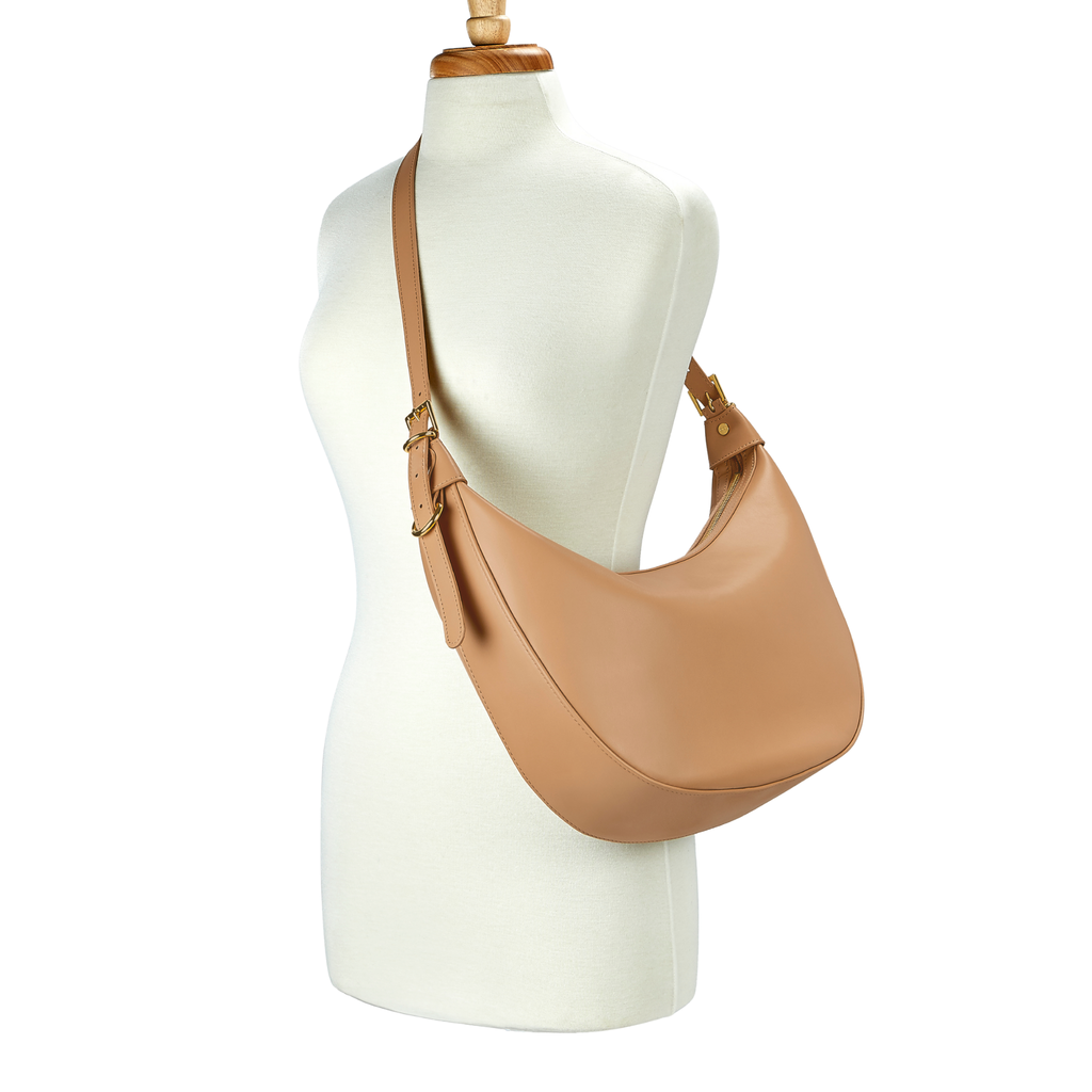 The crescent silhouette of the Reagan Hobo can expand to fit all your essentials. Crafted from smooth French calfskin leather, it not only boasts a soft and supple texture but also guarantees durability and long-lasting quality. The bag's rich and subtle grain patterns enhance its overall allure, making it a stylish choice for any occasion. You can wear it as a shoulder bag or carry it as a short crossbody, offering versatile and convenient options for your daily needs.