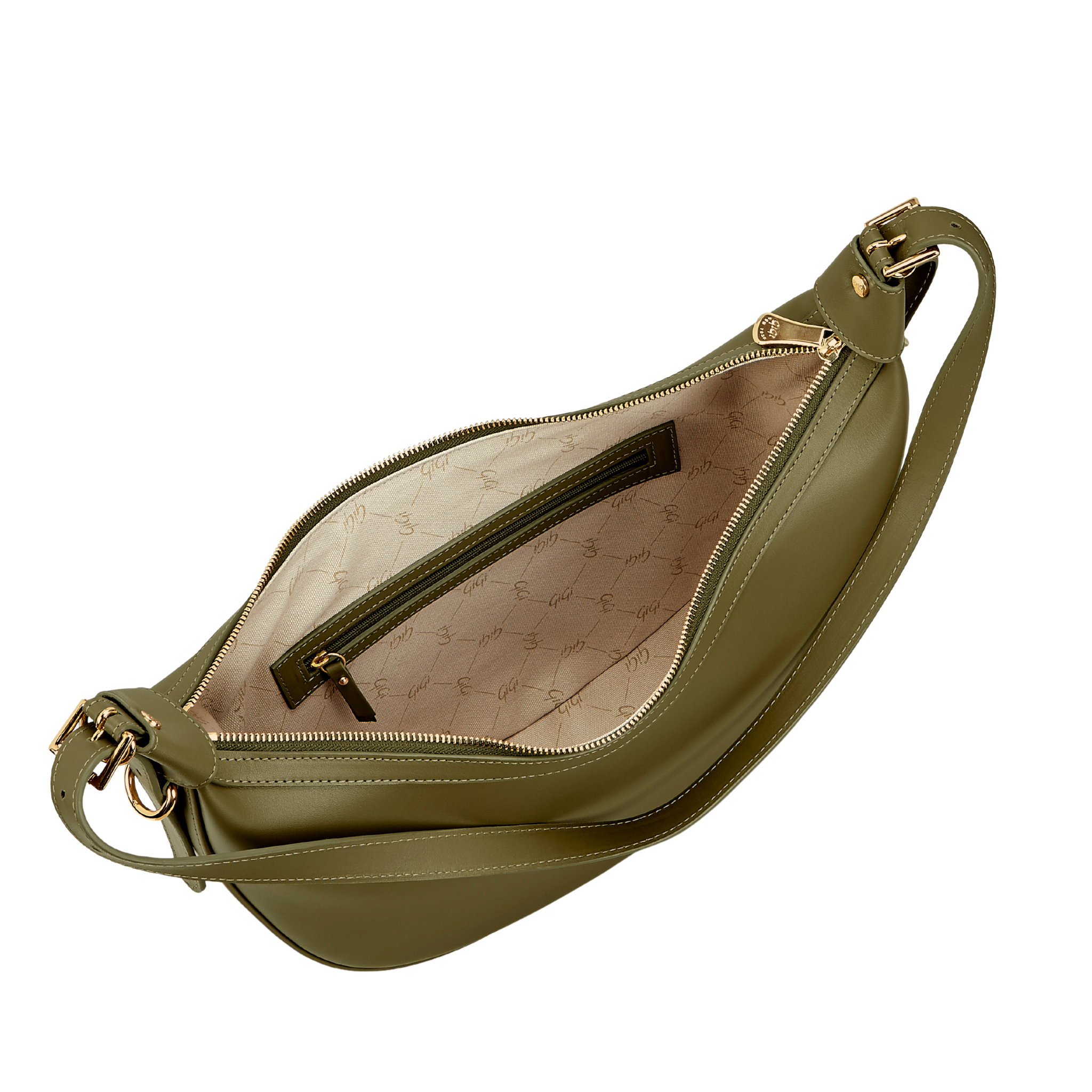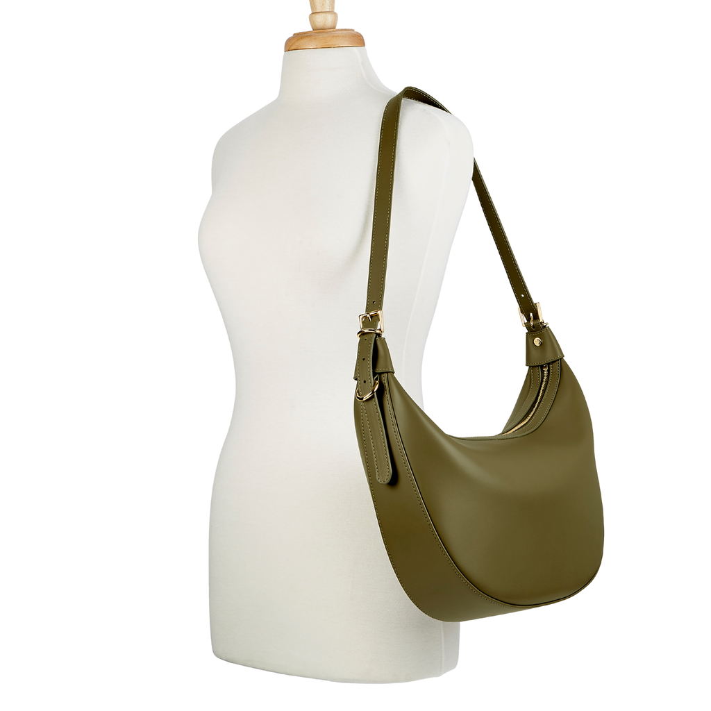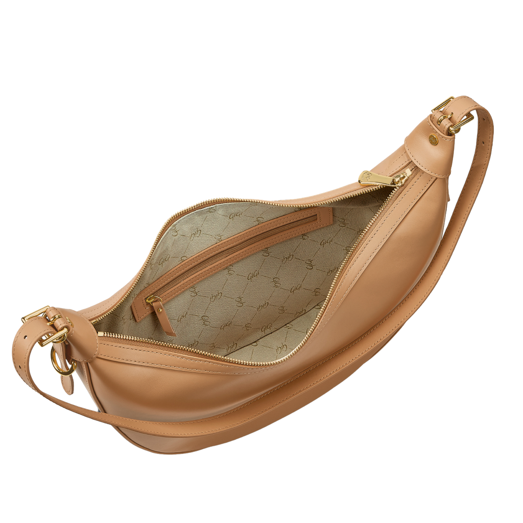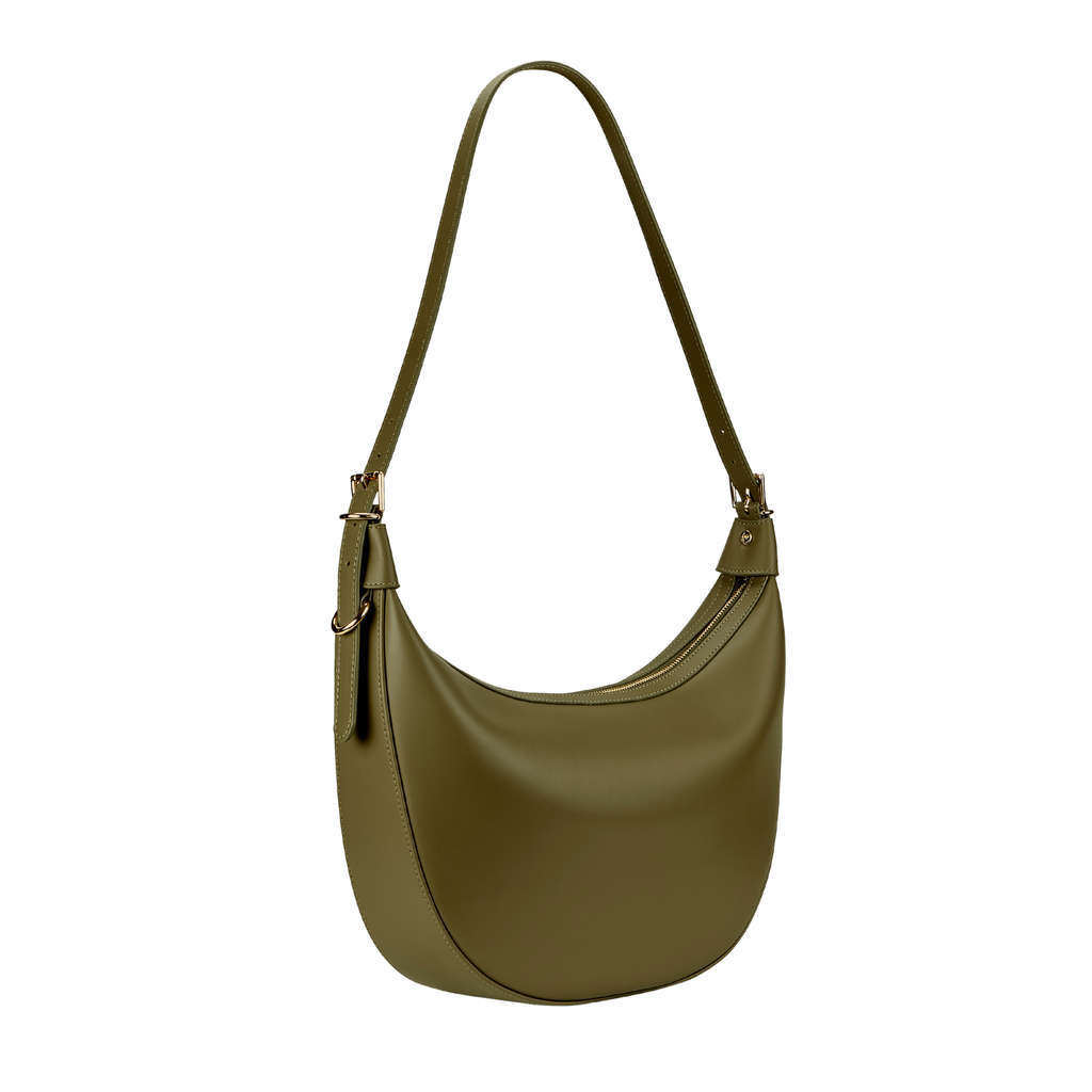 The crescent silhouette of the Reagan Hobo can expand to fit all your essentials. Crafted from smooth French calfskin leather, it not only boasts a soft and supple texture but also guarantees durability and long-lasting quality. The bag's rich and subtle grain patterns enhance its overall allure, making it a stylish choice for any occasion. You can wear it as a shoulder bag or carry it as a short crossbody, offering versatile and convenient options for your daily needs.