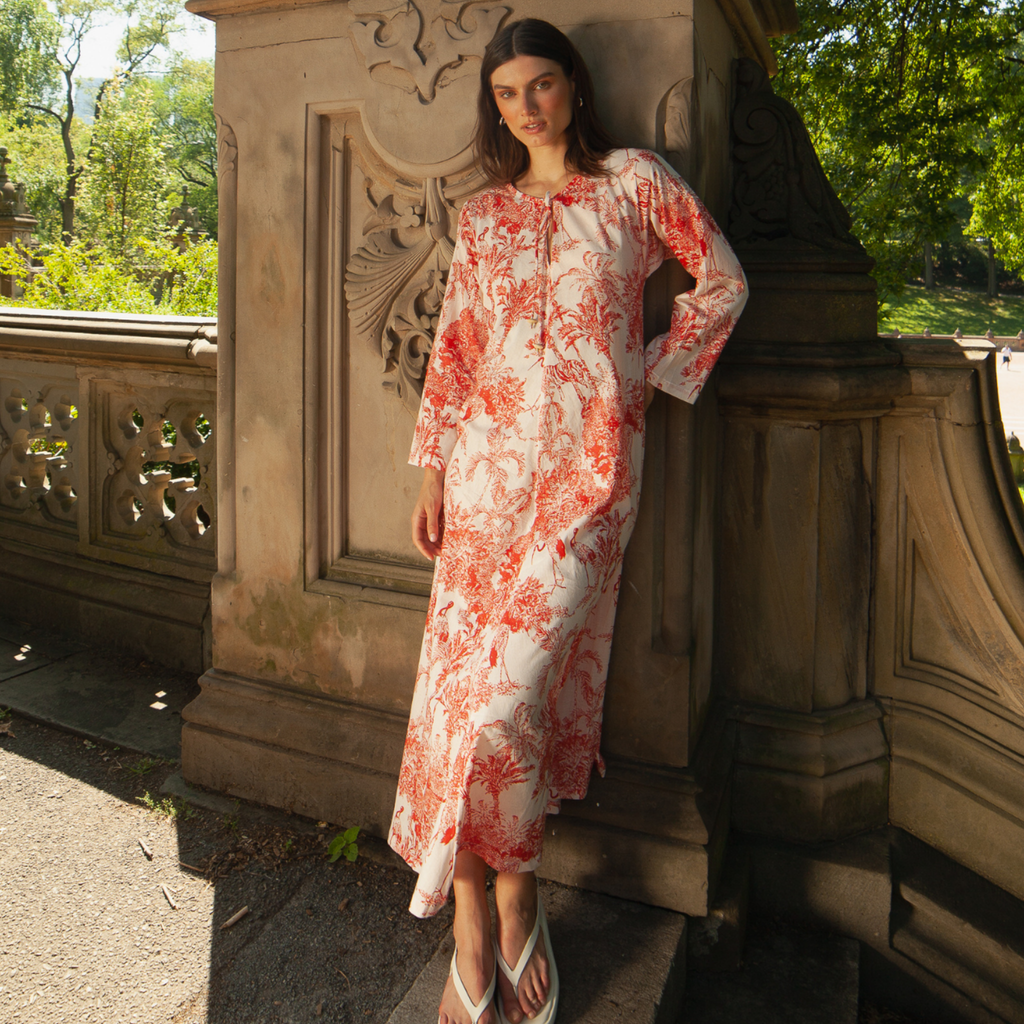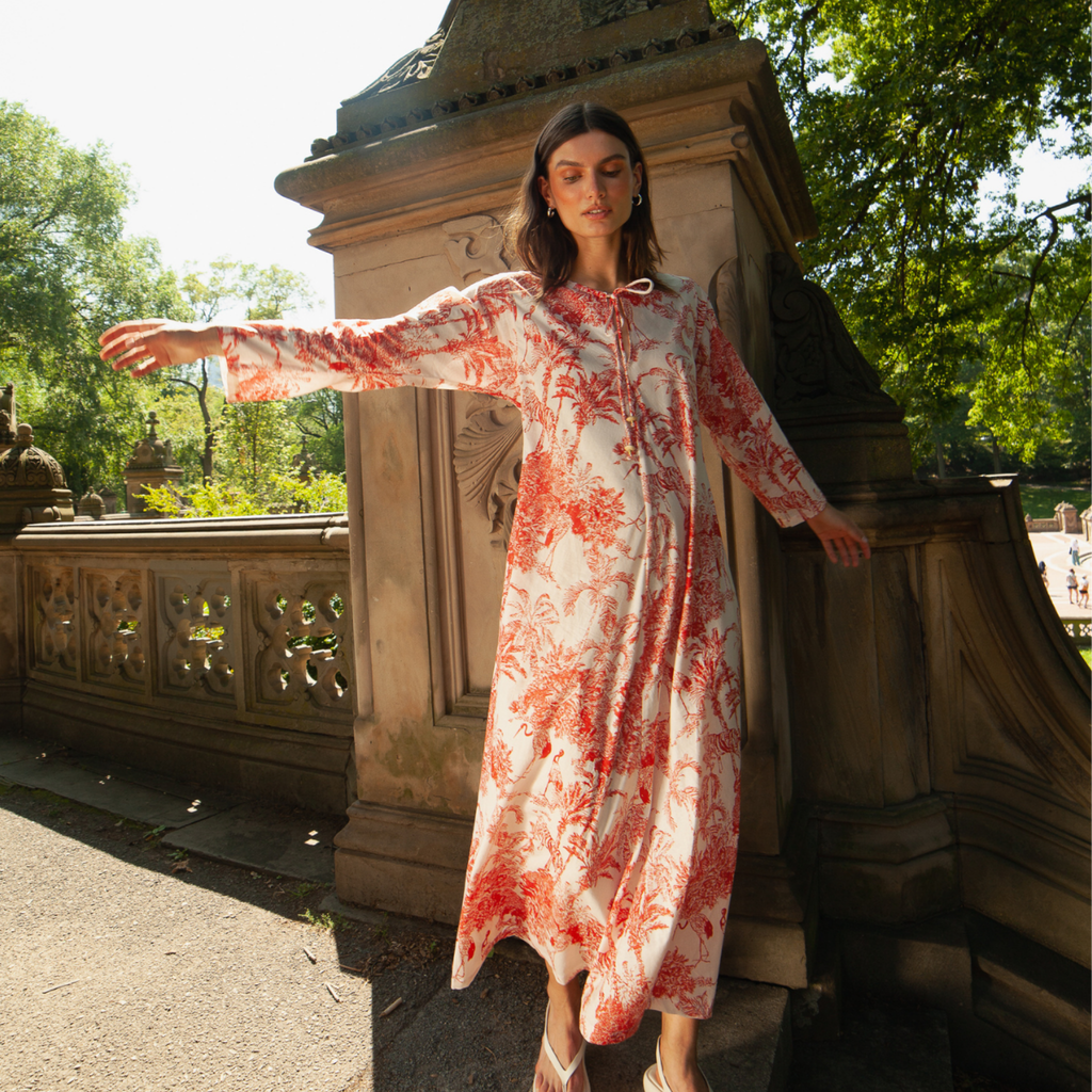 - Other details: falls below the knee, tie detail at collar and tassel & pom pom accents