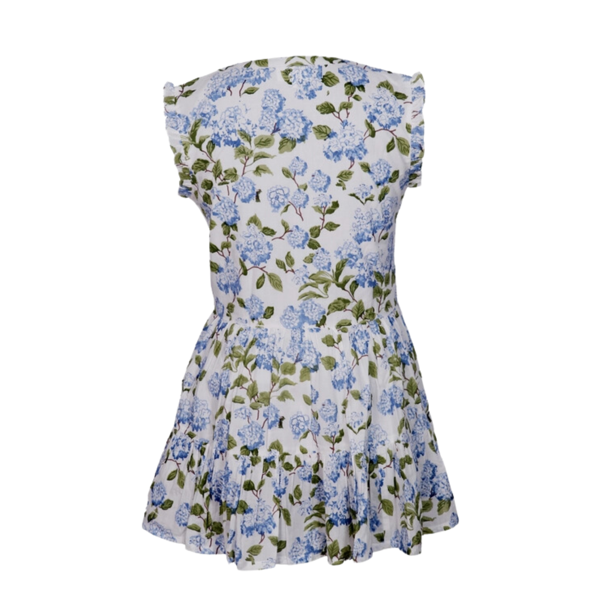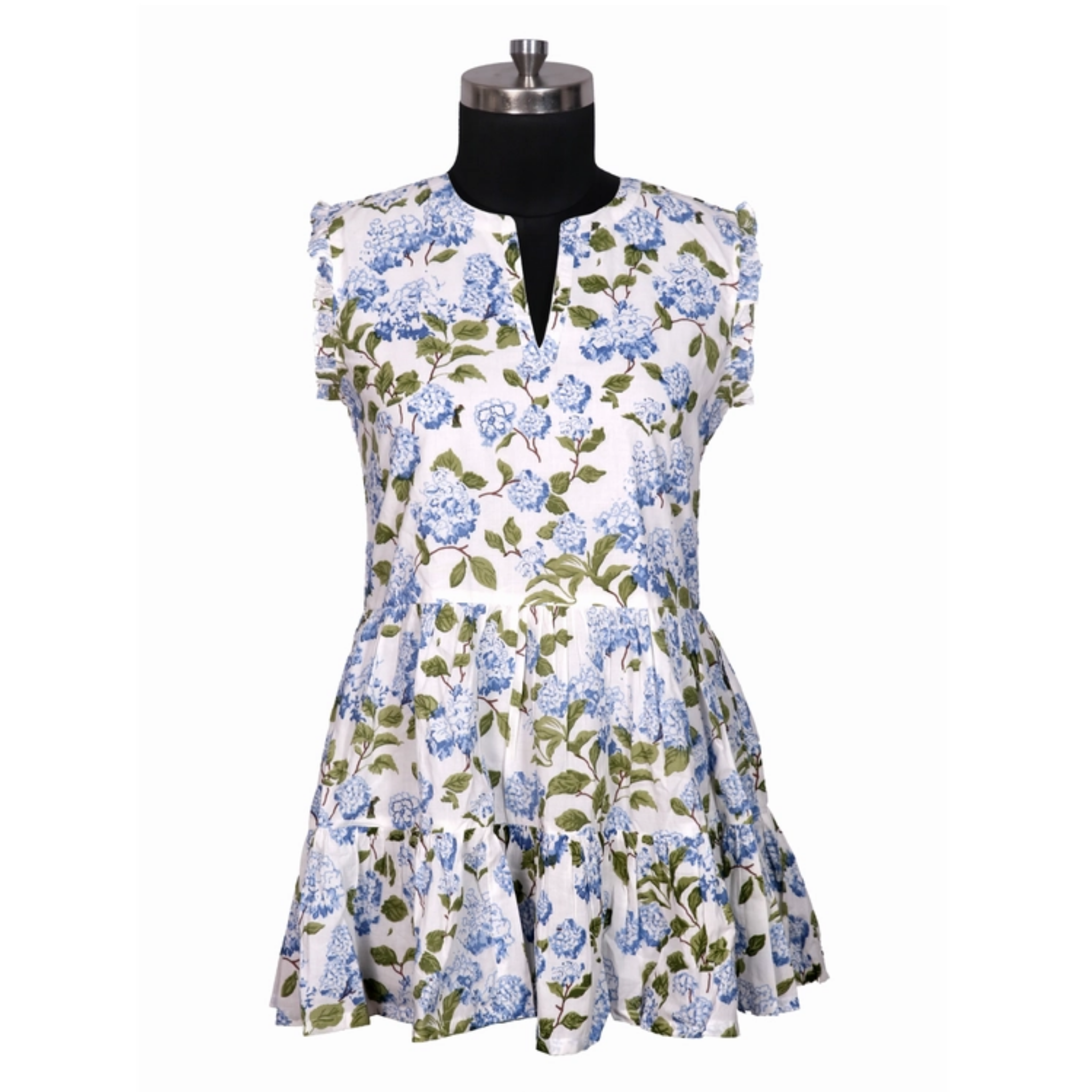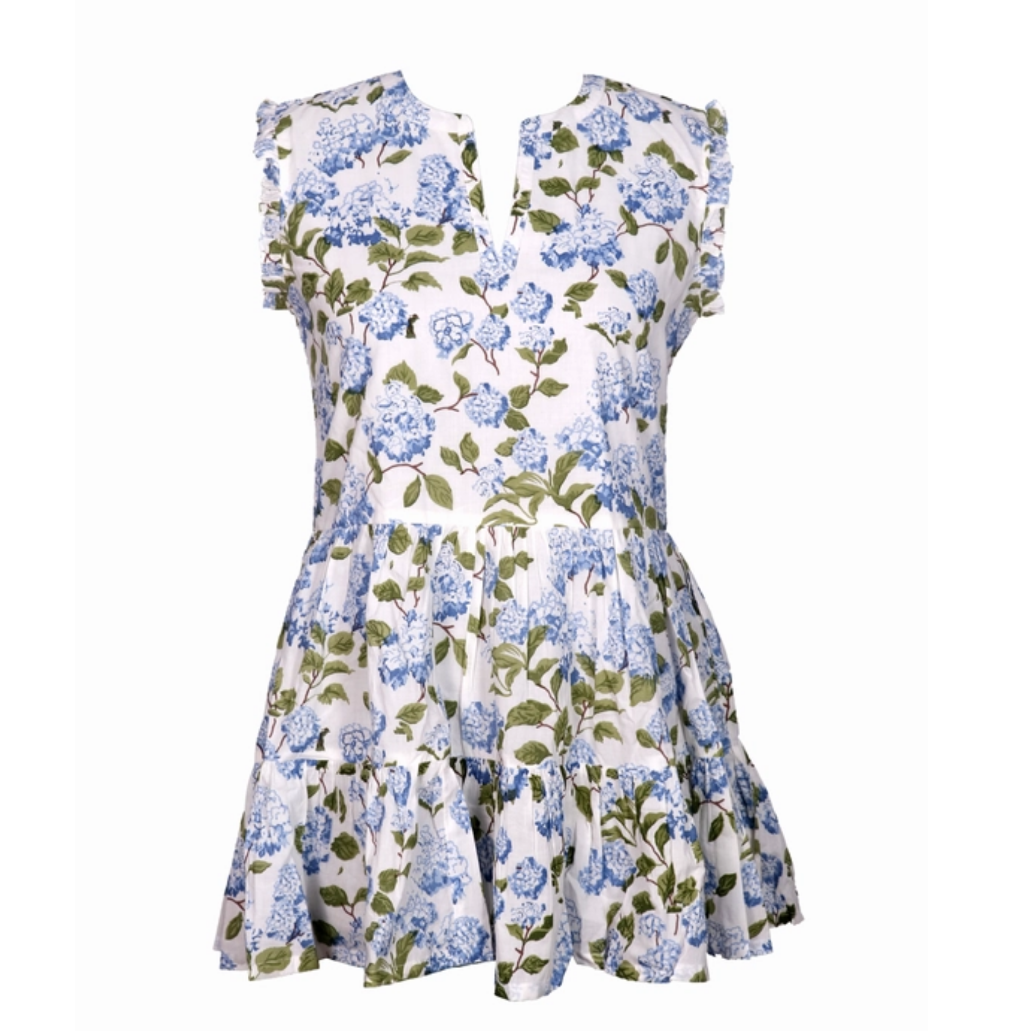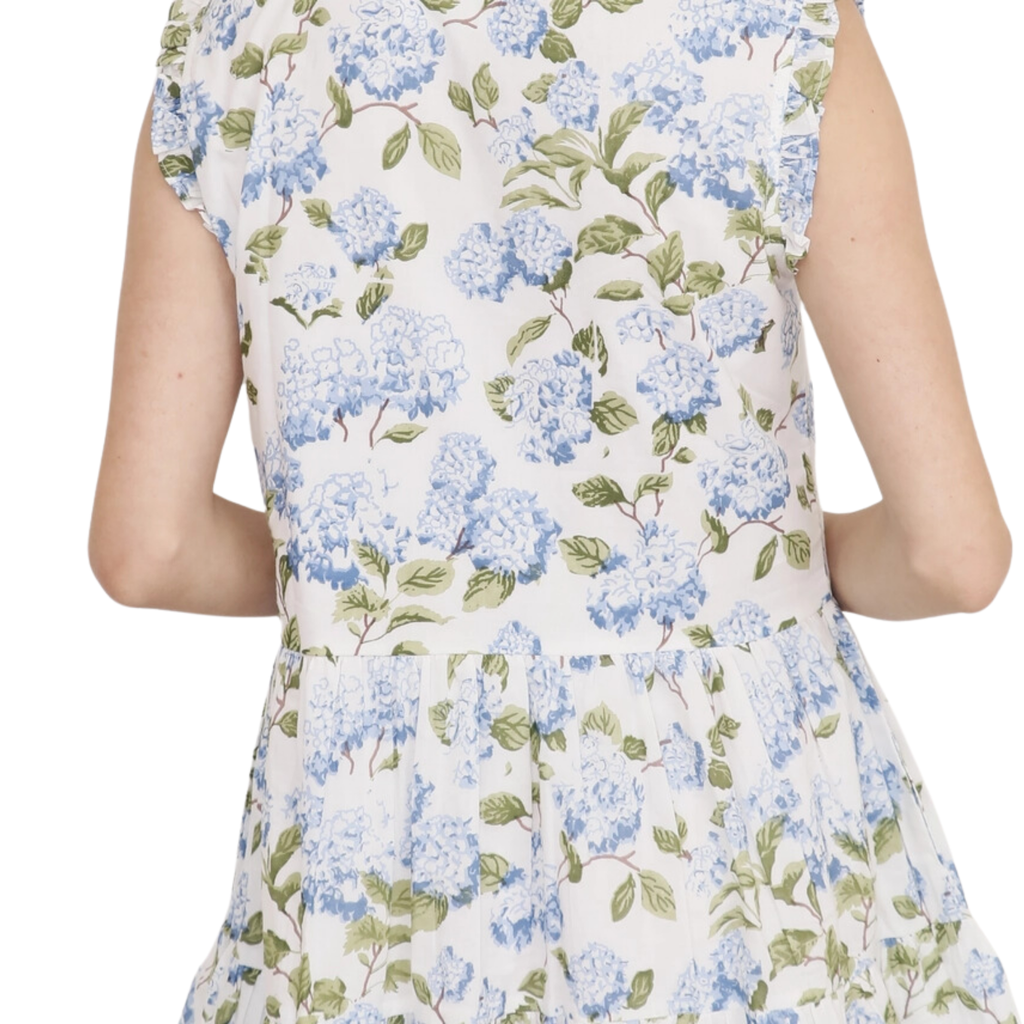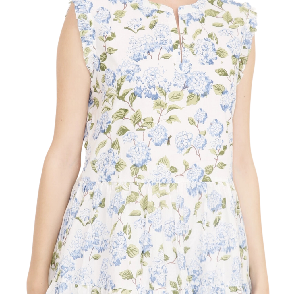 Sleeveless Blue Hydrangea Print A-Line Dress