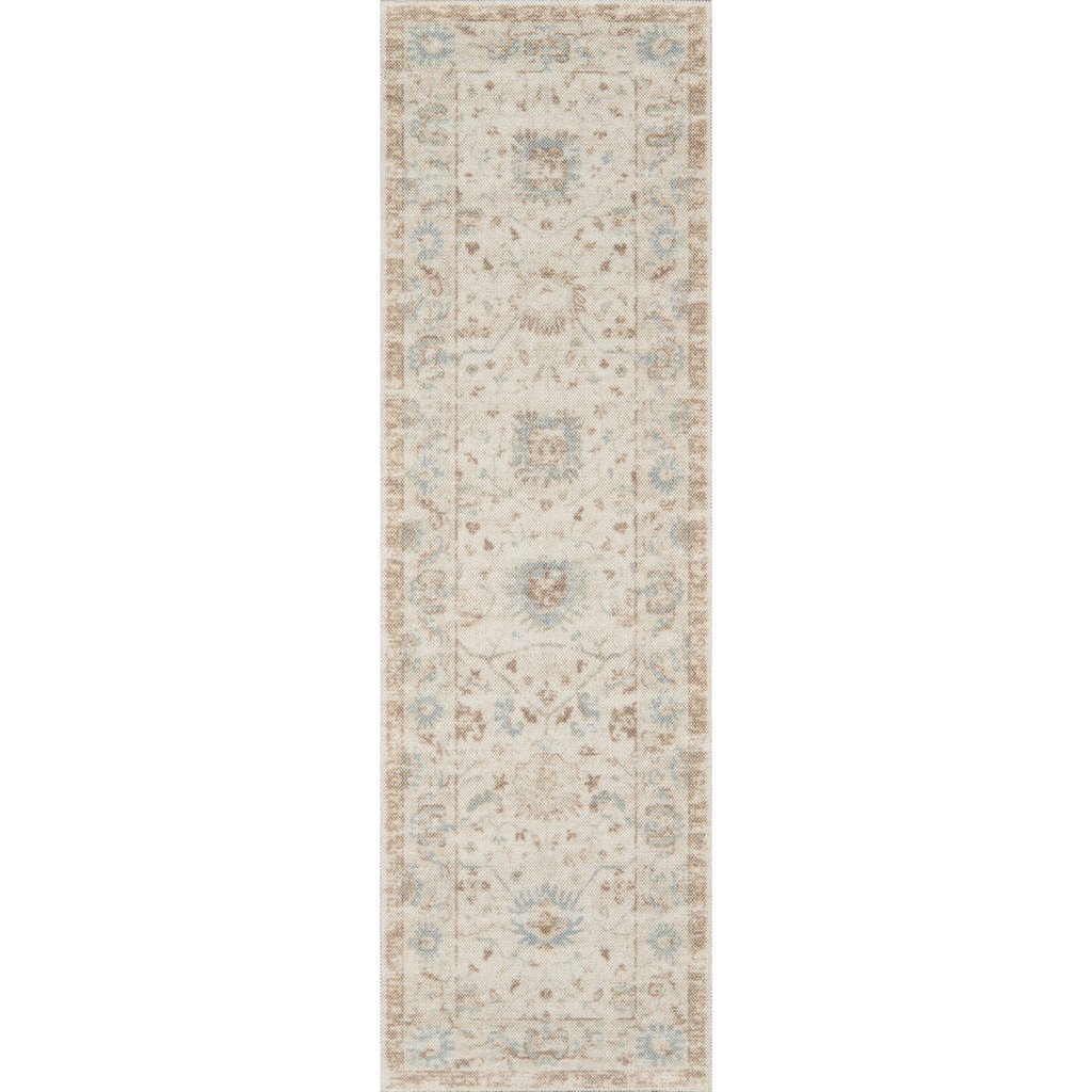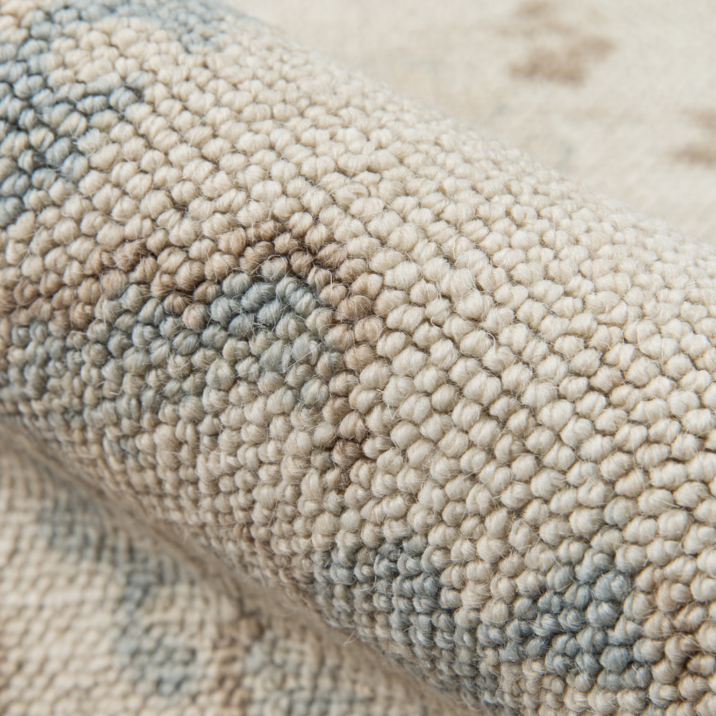 Crafted in an innovative combination of natural wool and nylon threads, modern machining mimics ancestral weaving techniques to create a series of chic floor coverings that are superior in beauty and performance. The pastel color palette of Anatolia presents a softer side of tribal styles. Subdued shades of pink, baby blue, and brown fill the field, and ornamental rug borders with classical medallions and vine and dot motifs.