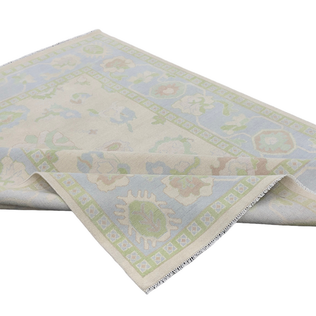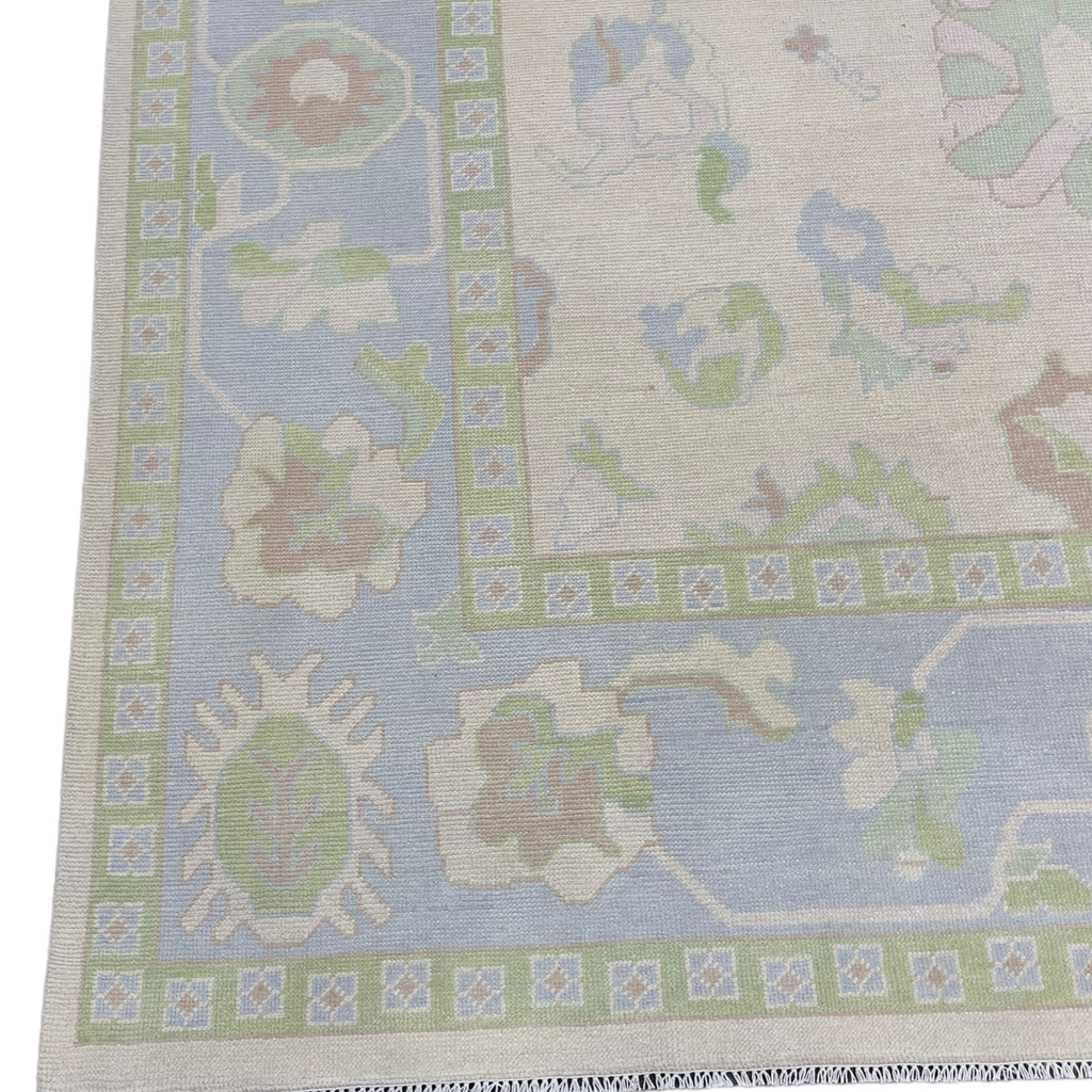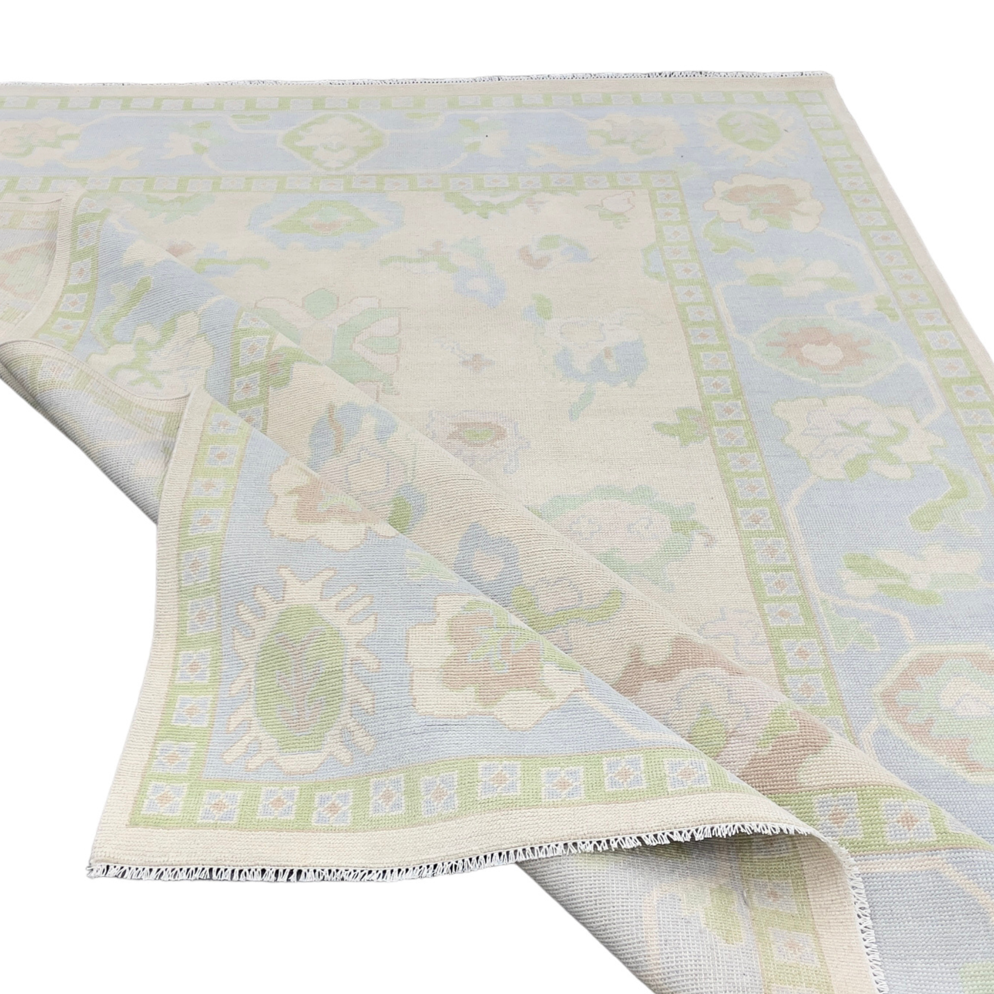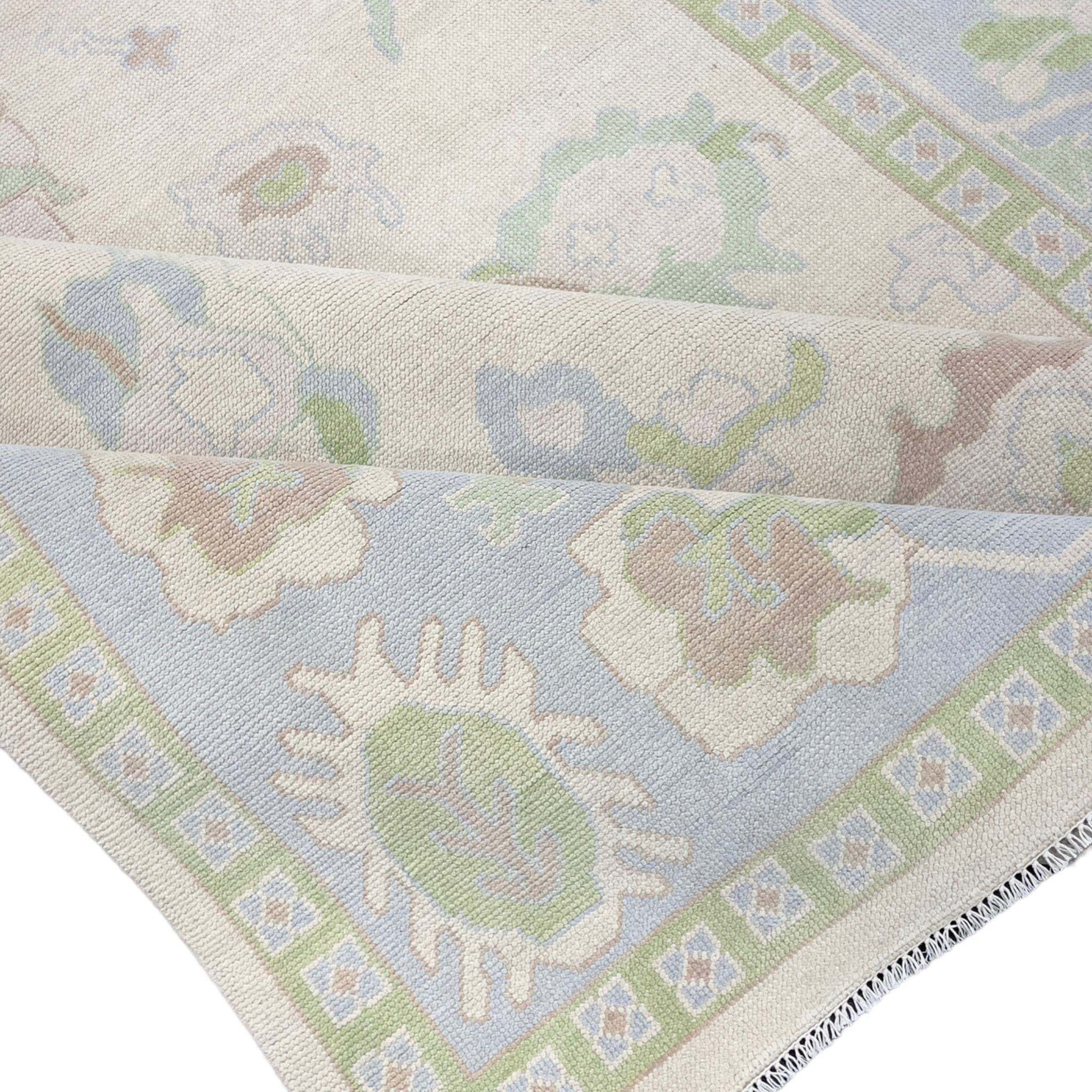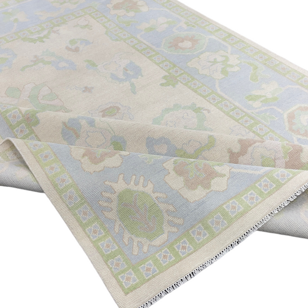 Indulge in the timeless elegance of the Chloé Oushak Rug in Bayberry Frost. Handcrafted with the finest materials, this rug boasts a delicate bayberry frost color that will elevate any room. Its intricate design creates a sense of luxury and sophistication, making it a perfect addition to your home.