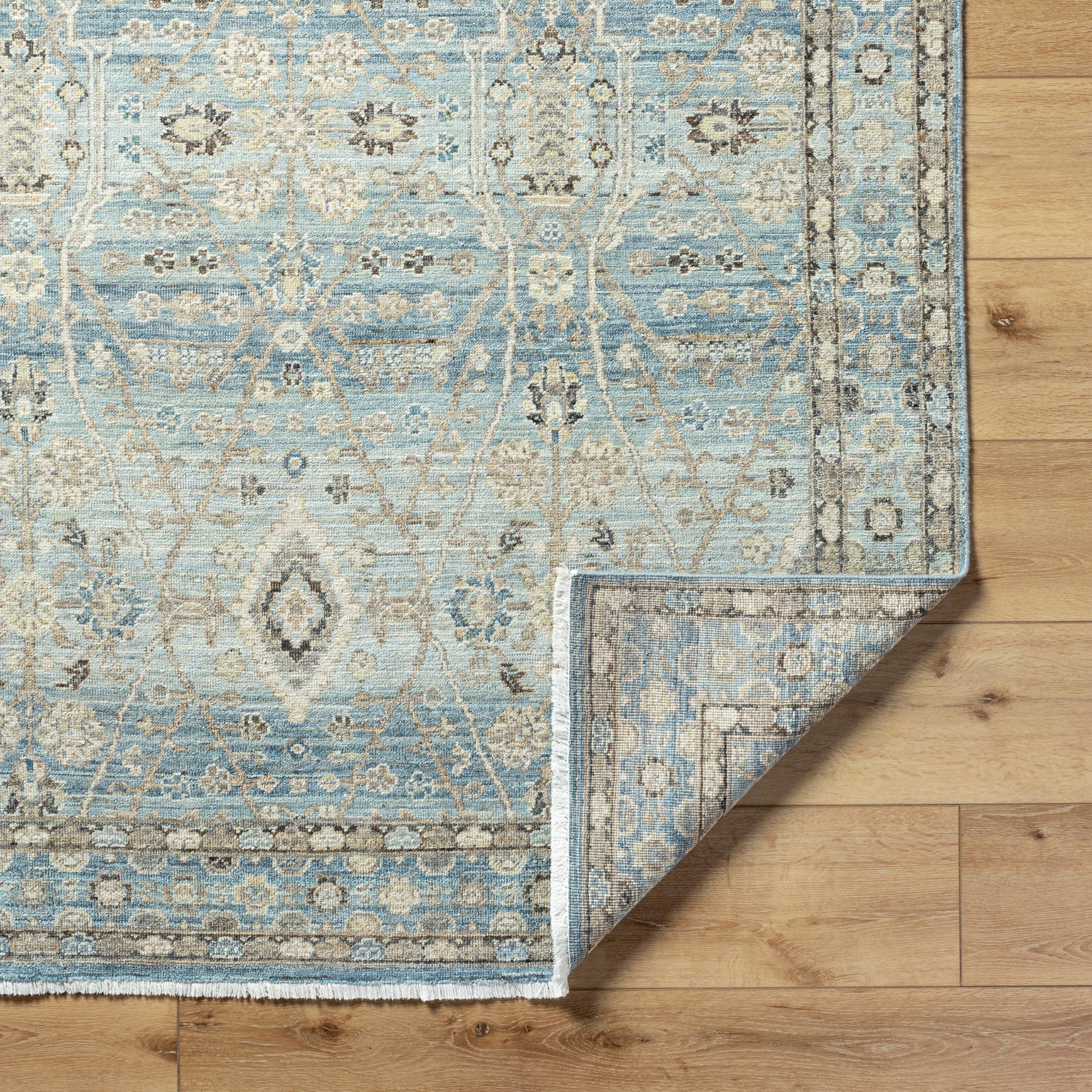 This hand knotted area rug is made from 100% wool. Available in a variety of sizes, including an 18" sample. Please select your size preference from the menu above.