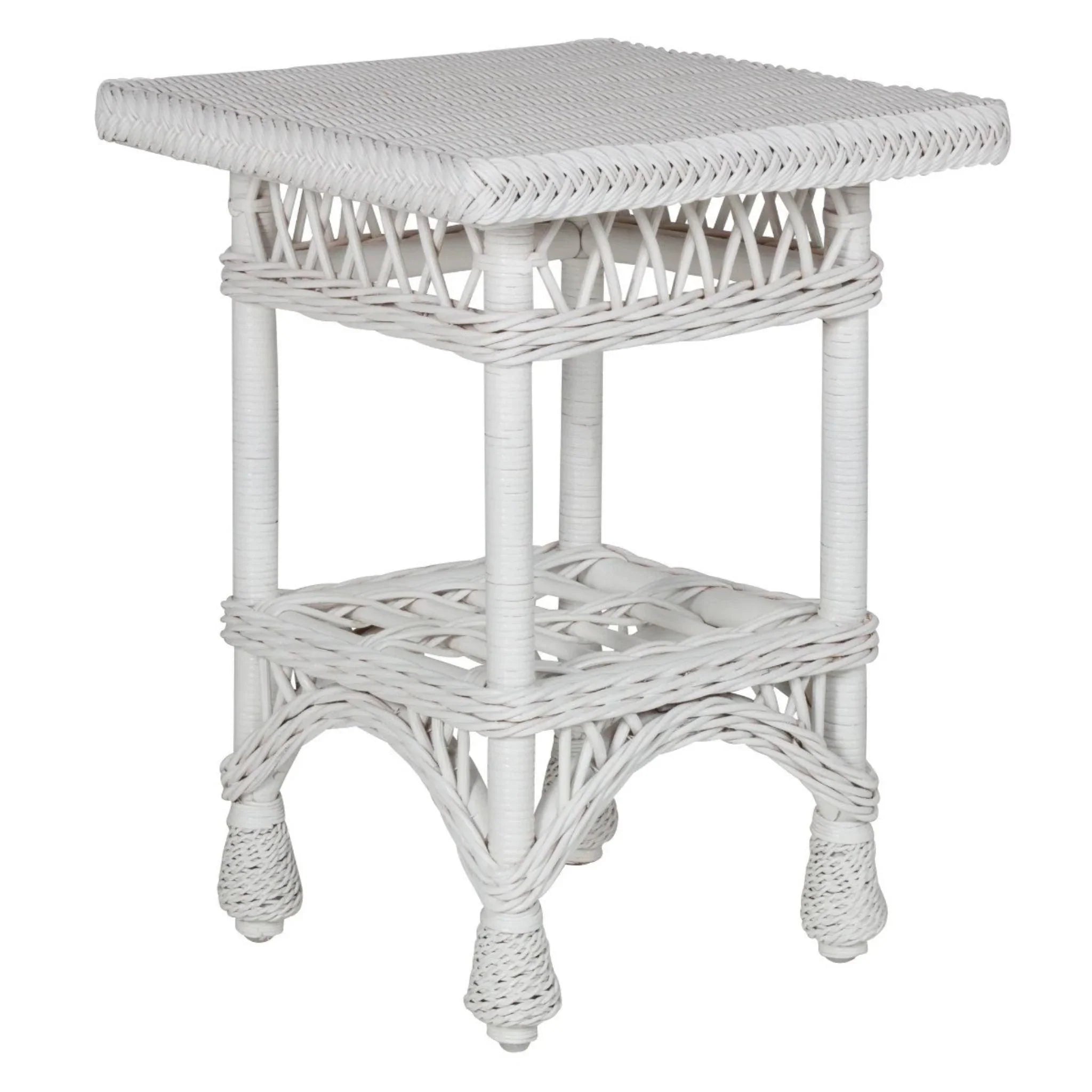 Decorate your outdoor patio or indoor space with this classic wicker end table.