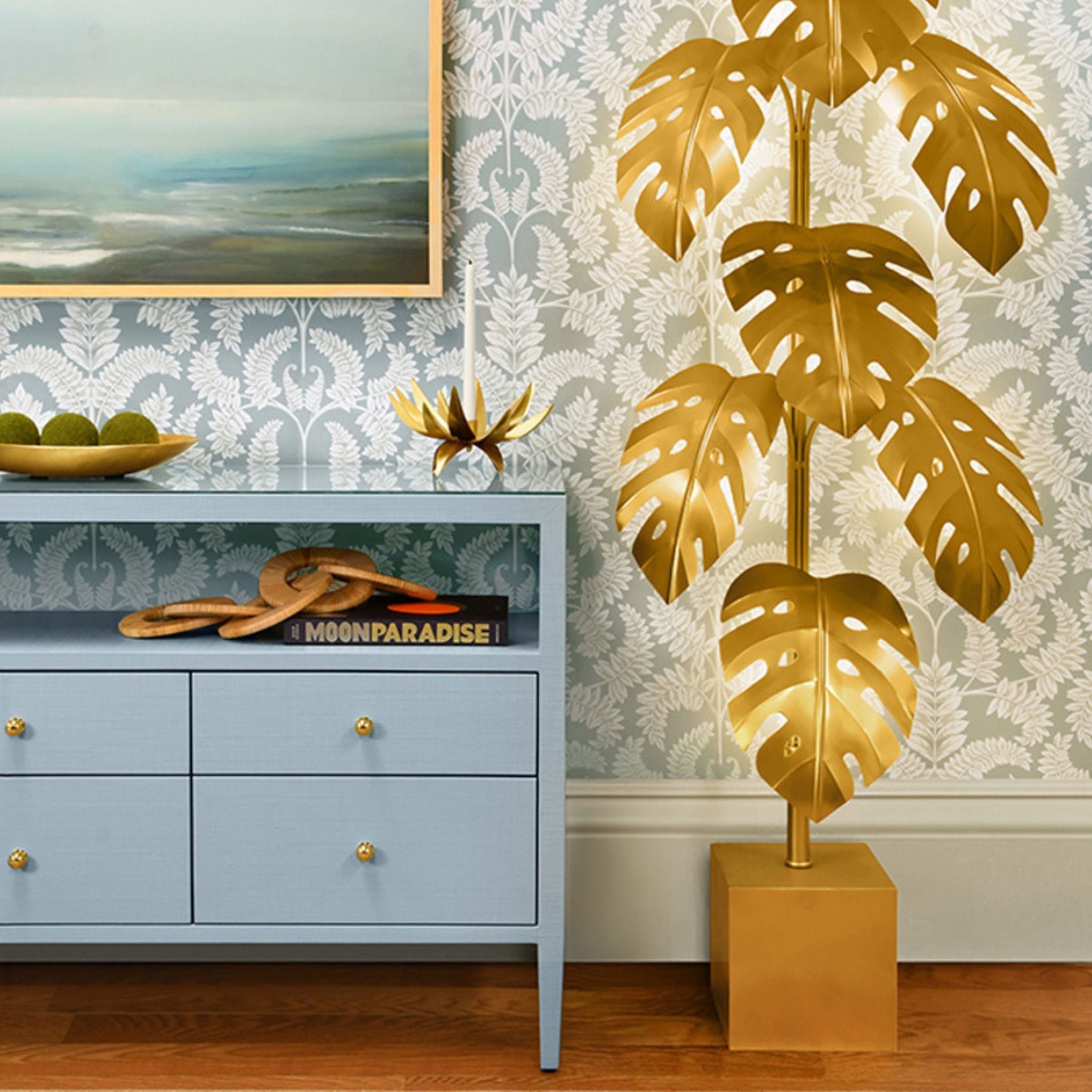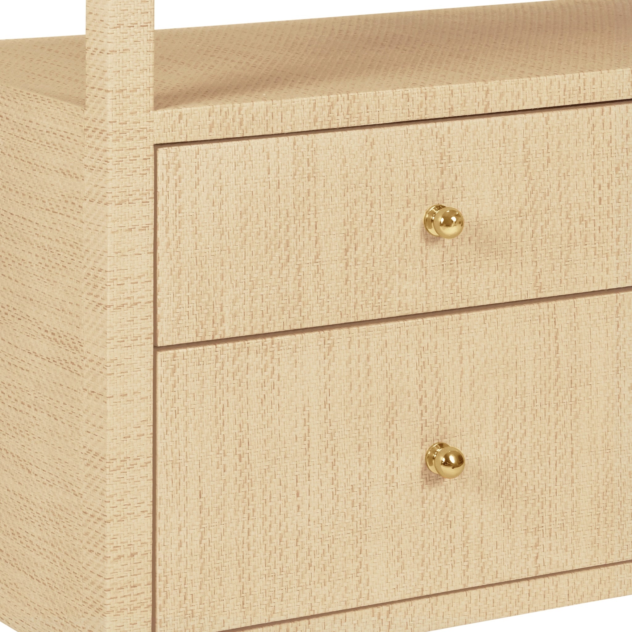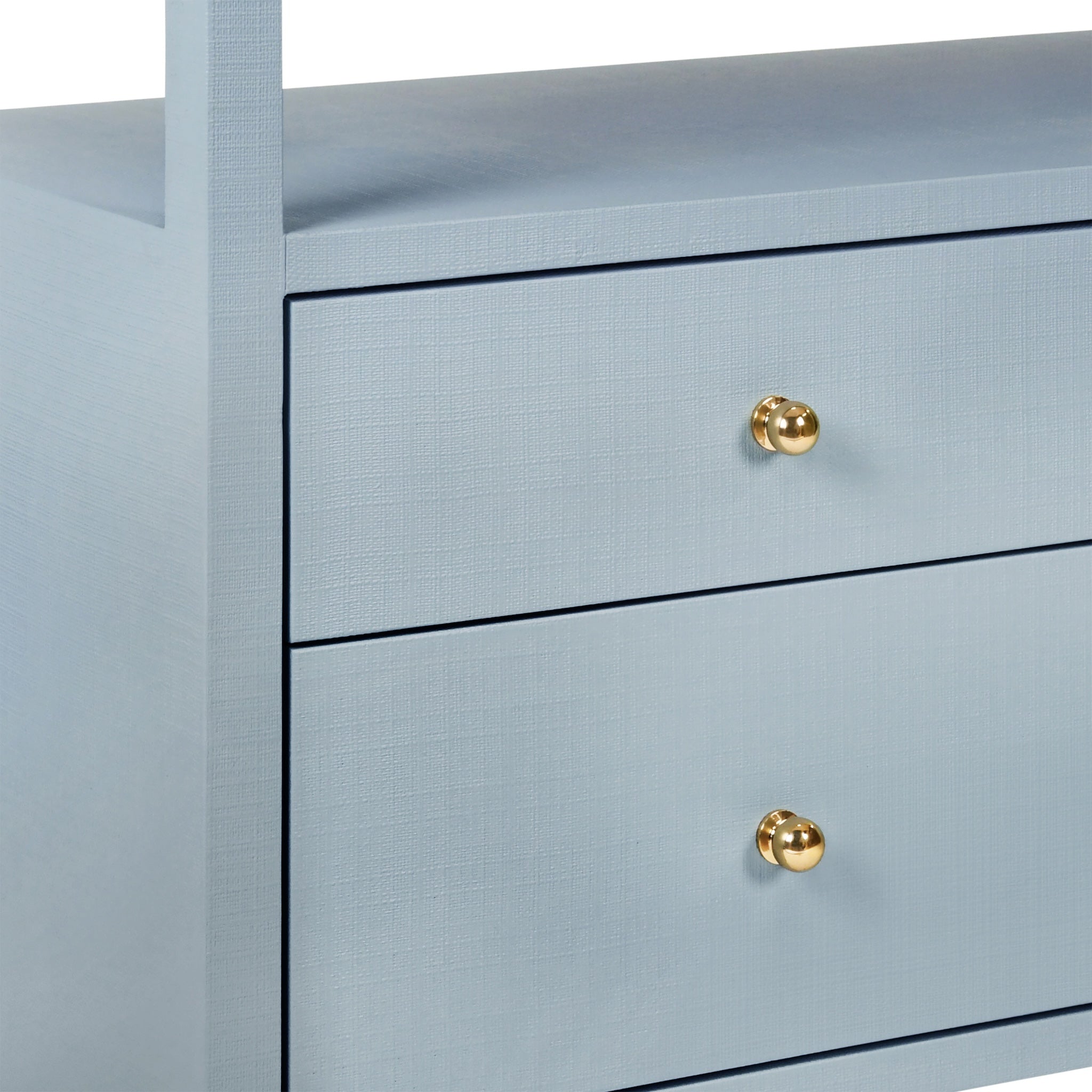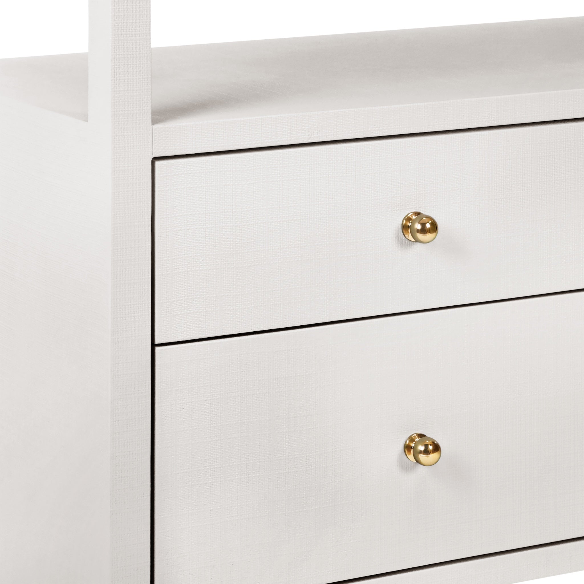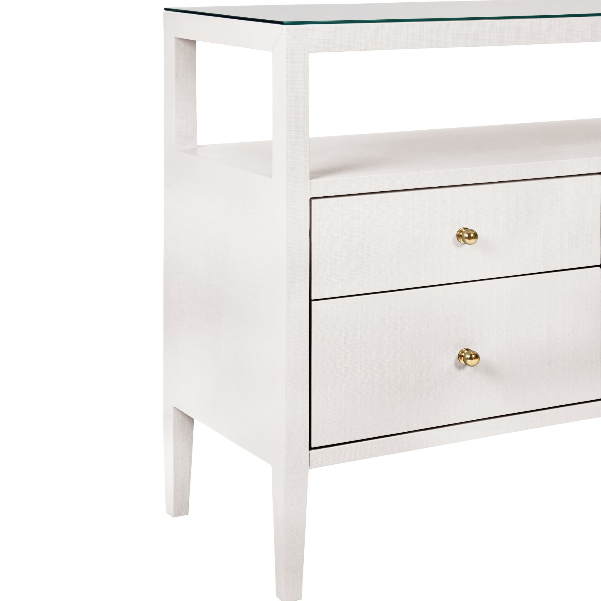 The Jordan Console showcases six spacious drawers and an open shelf, all wrapped in rich burl wood and finished with polished brass knobs and a sleek glass top. Its refined design and generous storage make it a standout piece that brings warmth, texture, and sophistication to any space.