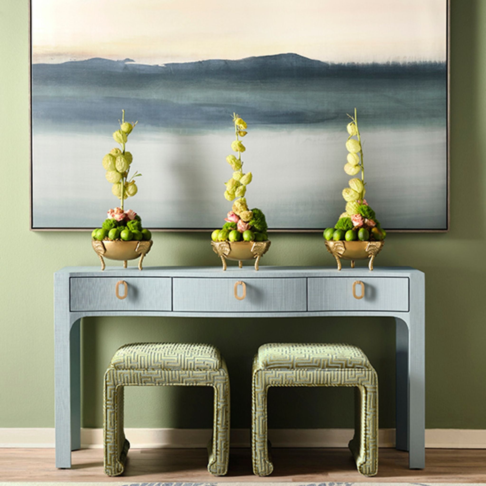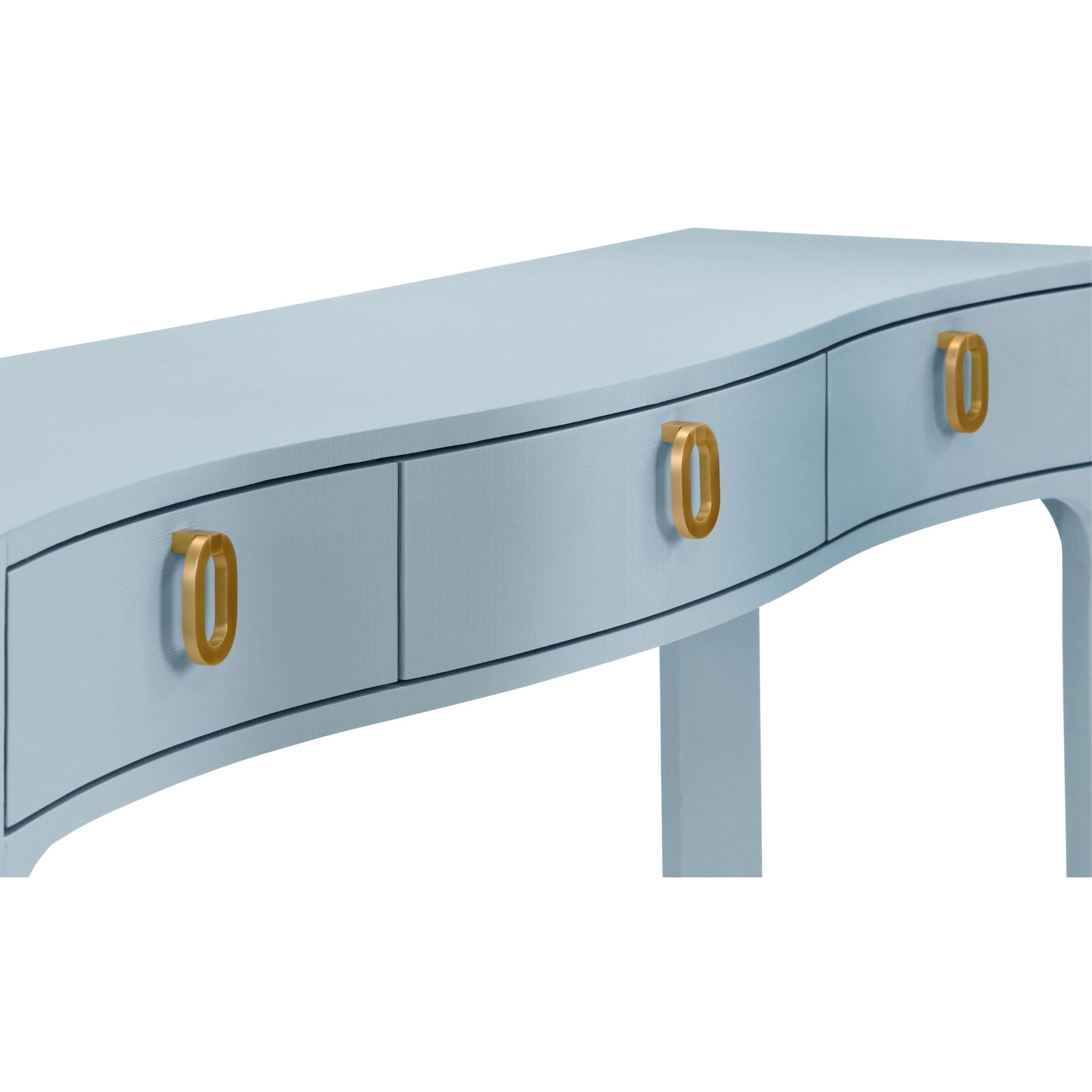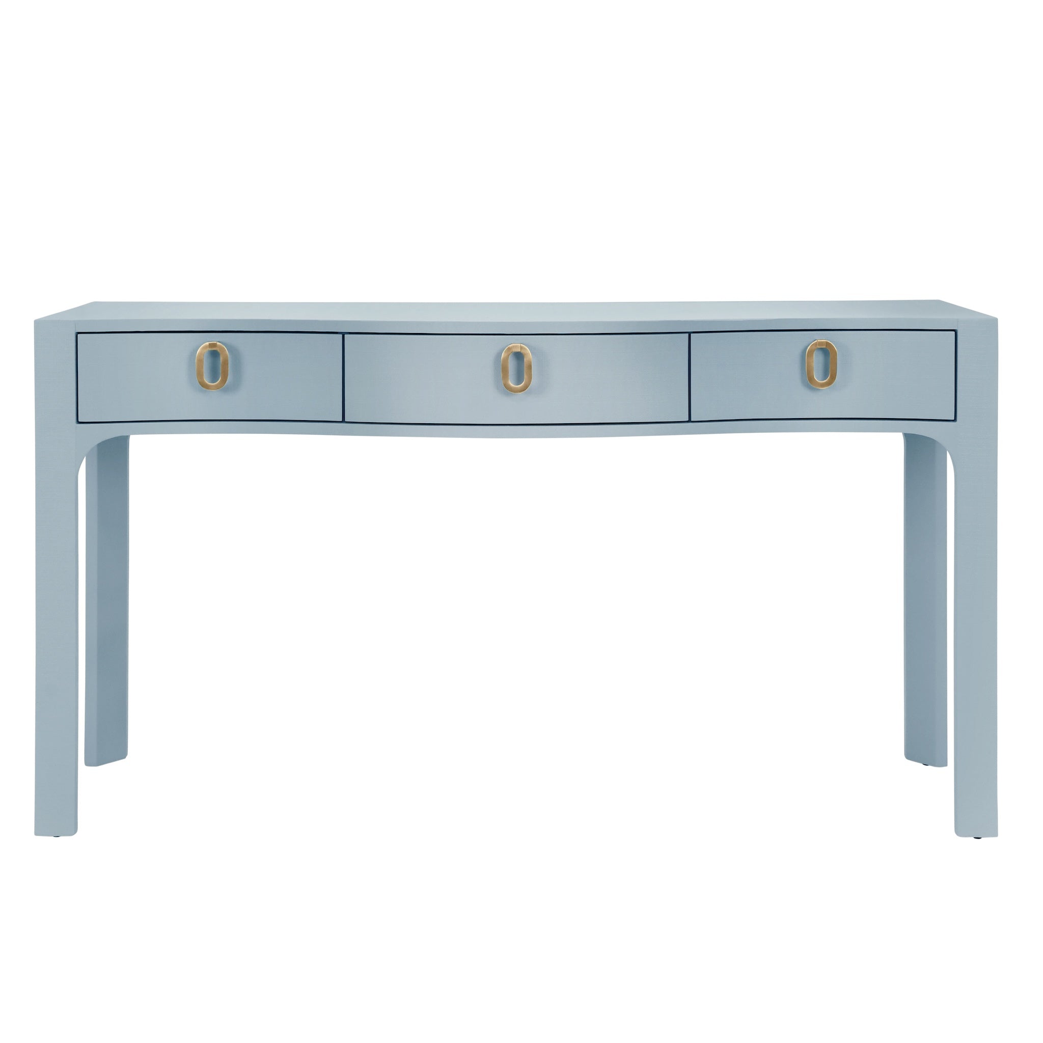 Sabrina Three Drawer Console in Textured Light Blue Linen