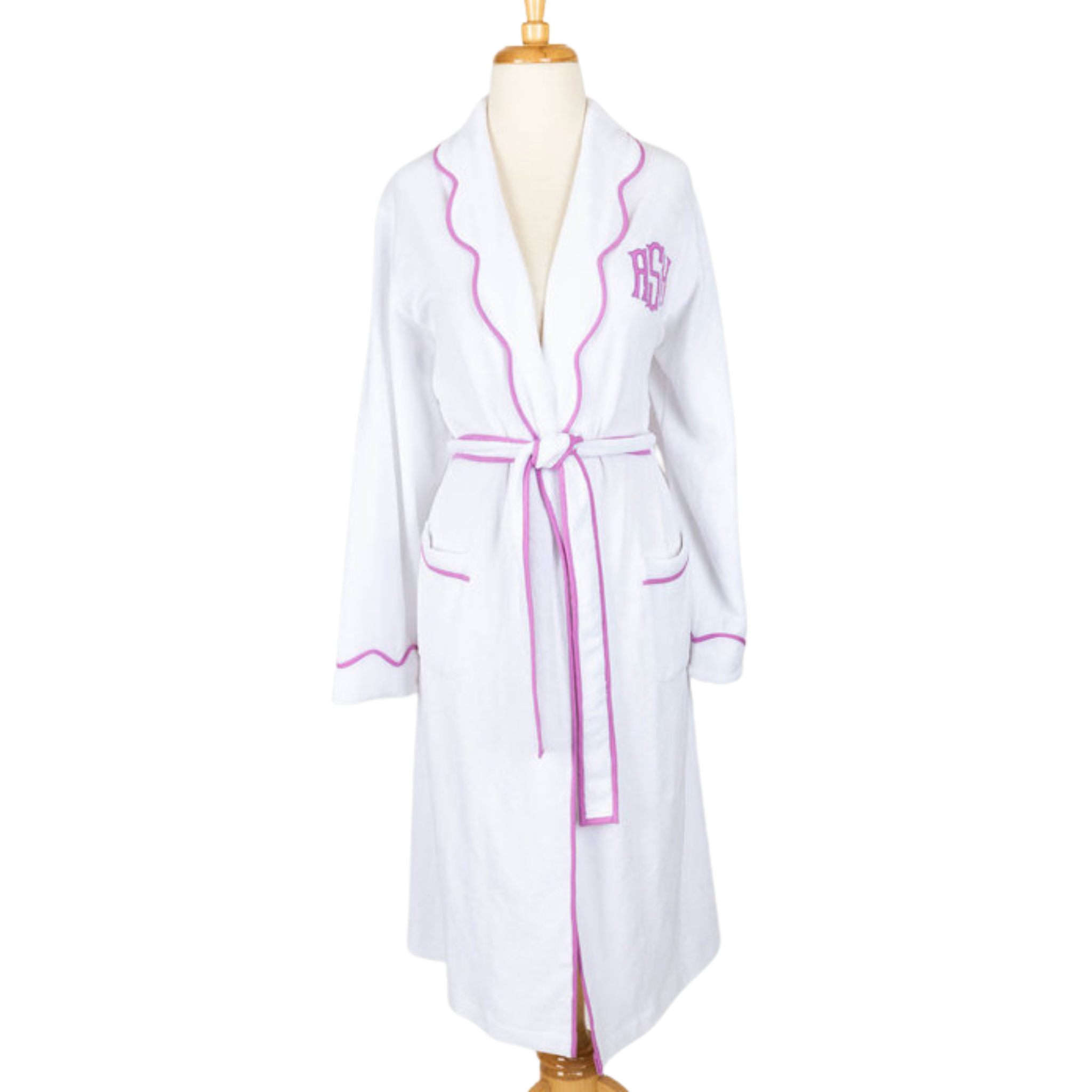 - Scallop collar white terry jersey robe with Classic appliqué