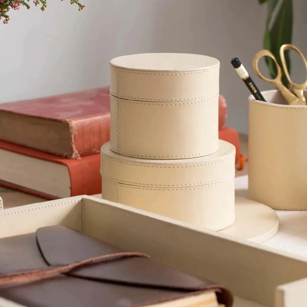 Orsett Leather Desk Accessory Set in Cream