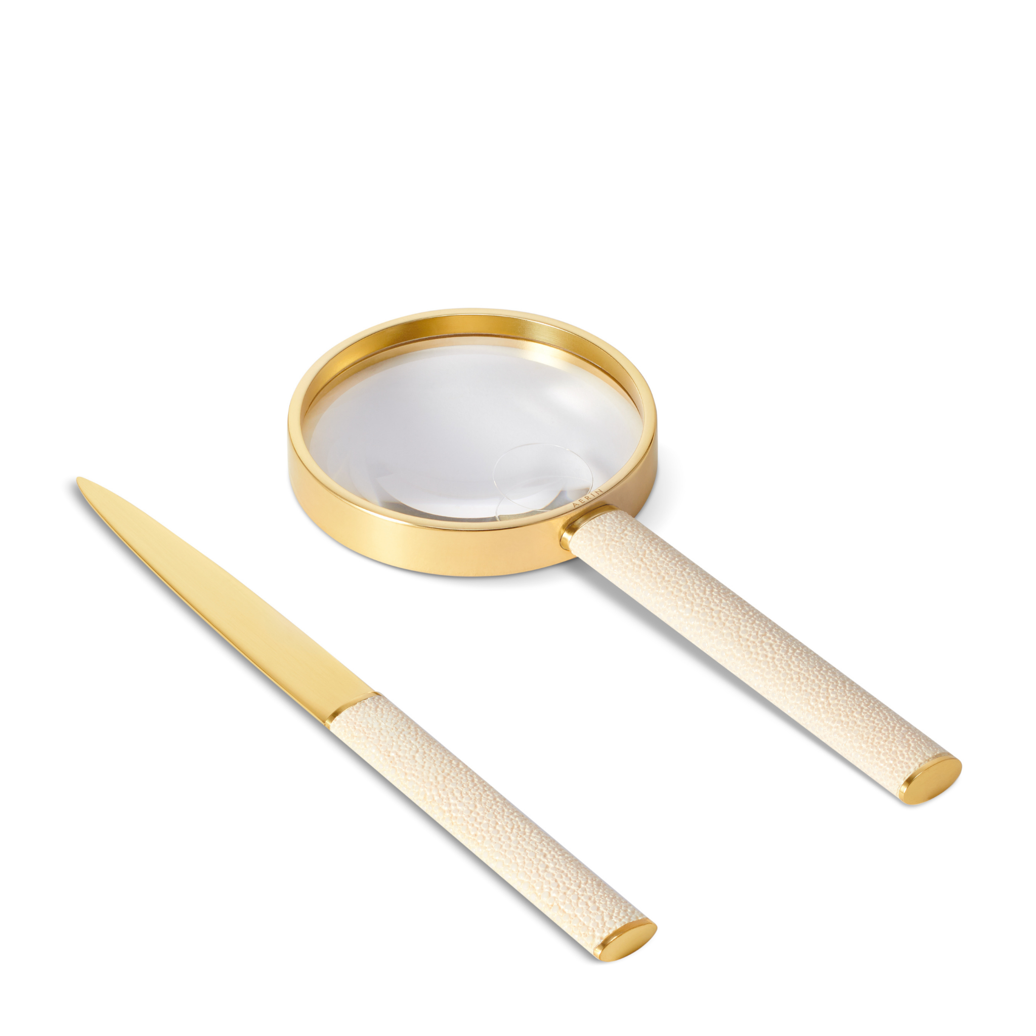 Shagreen Magnifying Glass And Letter Opener Set, Cream