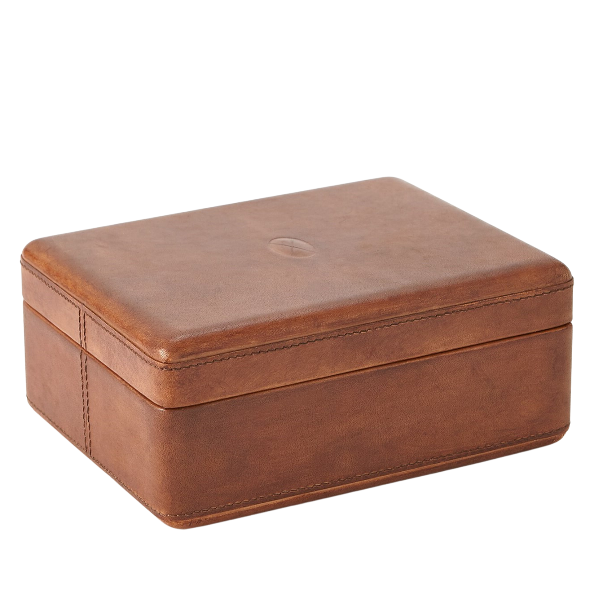 This rich tobacco-colored leather desk collection is aged to perfection with a hand-finishing technique that renders it practical and durable. Embossed with Barbara Barry's discreet mark this timeless collection of desk accessories will elevate any workspace.