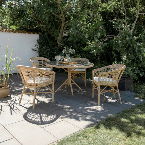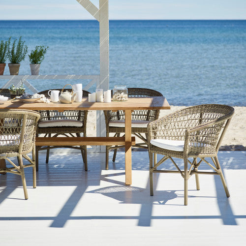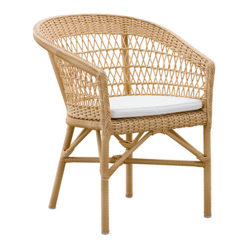 The Emma Outdoor Dining Chair by Sika Design is an all-weather piece created to be both elegant and durable. With its eye-pleasing open-weave design and easy barrel silhouette, it makes a comfortable choice for dining alfresco on a patio or terrace. Crafted with ultra-durable polyethylene ArtFibre™ wicker wrapped around a weatherproof AluRattan™ frame, this outdoor dining chair stands up to regular outdoor use. With its stackability, maintenance-free design, and enduring style, the Emma Dining Chair is a practical choice for home, commercial, and hospitality settings.